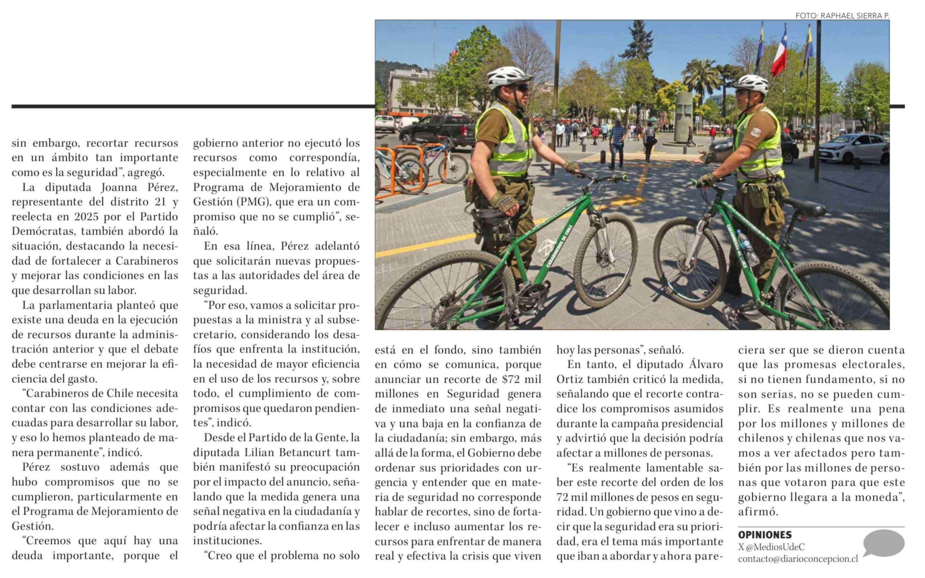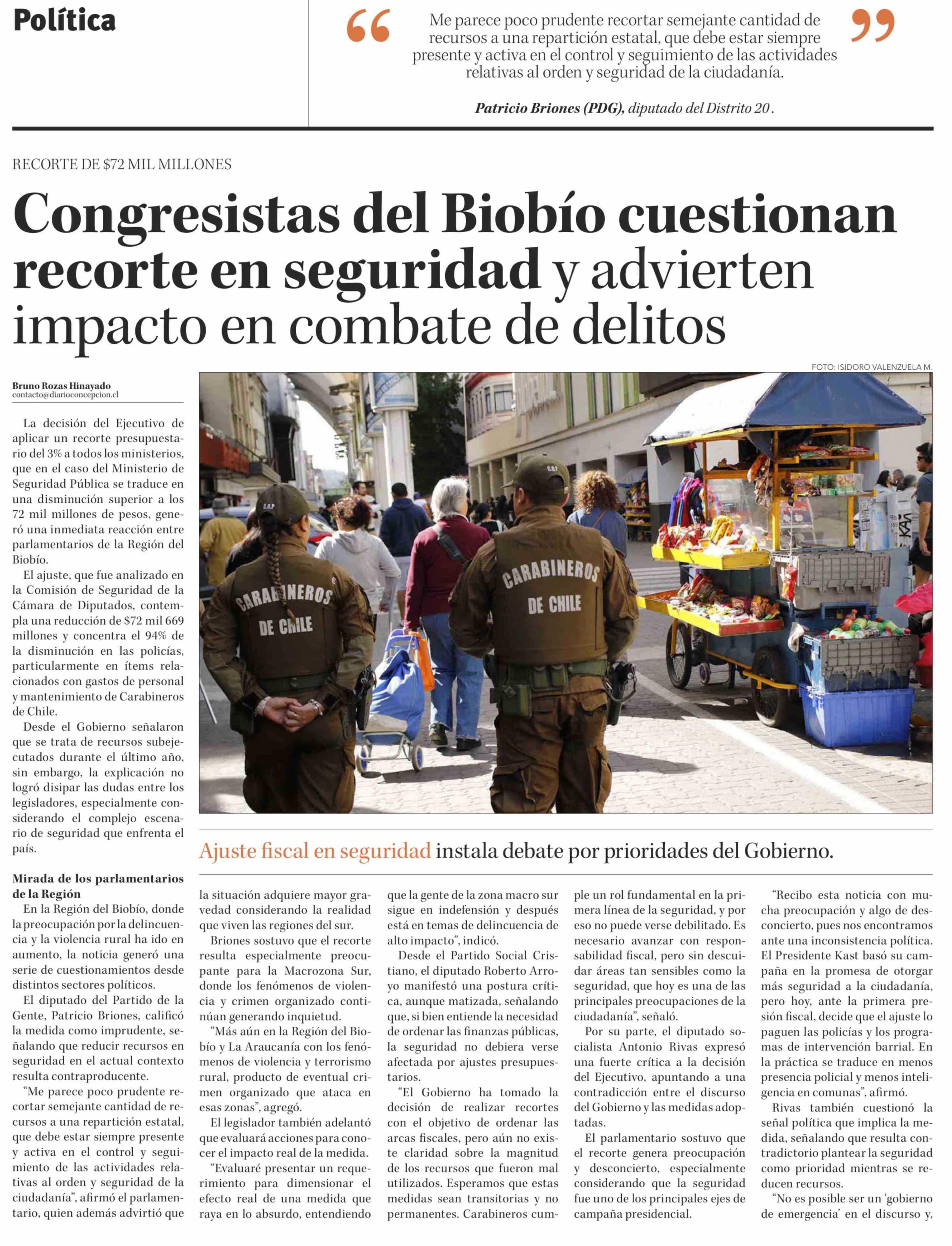 Congresistas del Biobío cuestionan recorte en seguridad y advierten impacto en combate de delitos 30-03-2026 Diario Concepción |