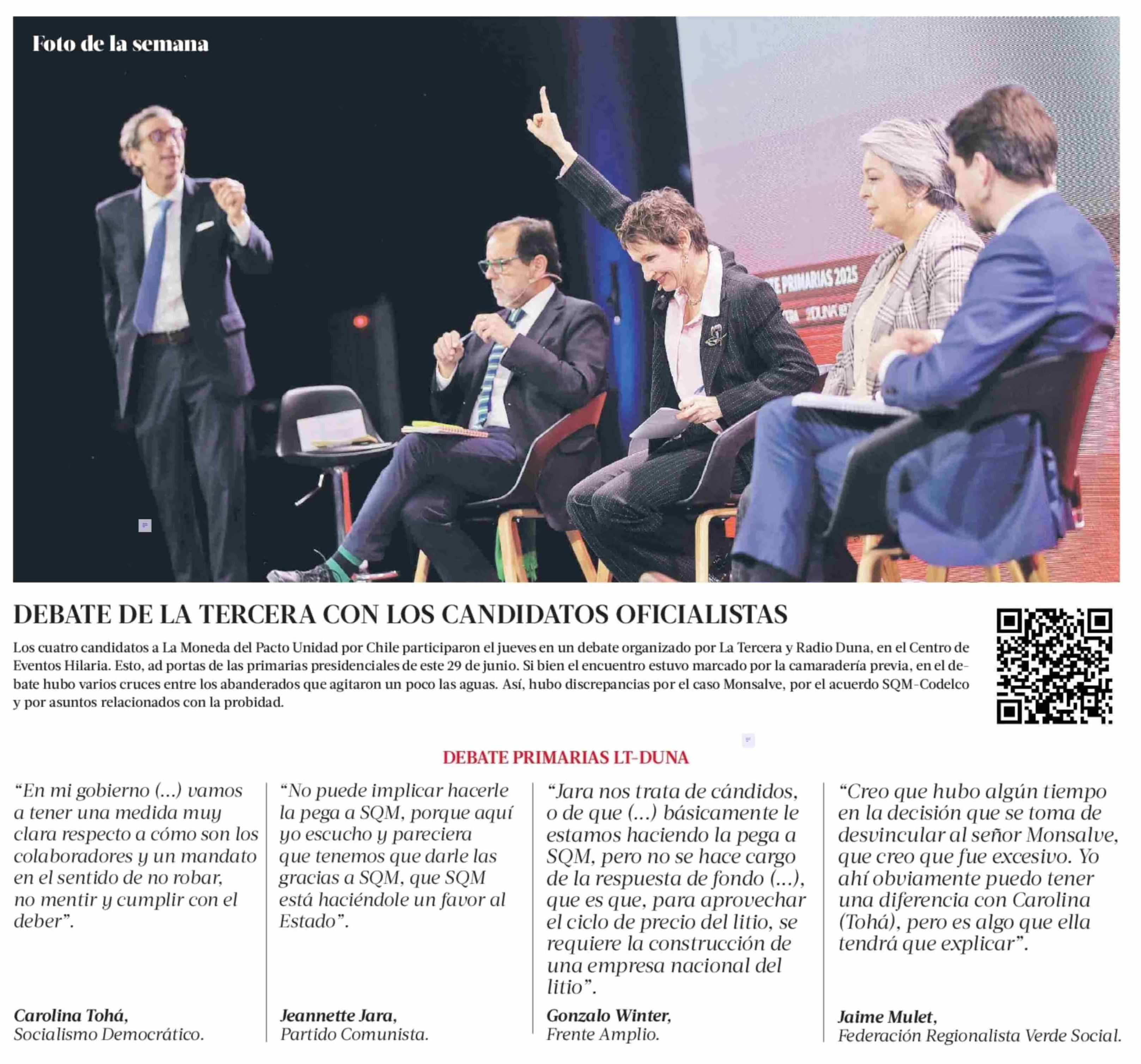 DEBATE DE LA TERCERA CON LOS CANDIDATOS OFICIALISTAS 07-06-2025 La Tercera |