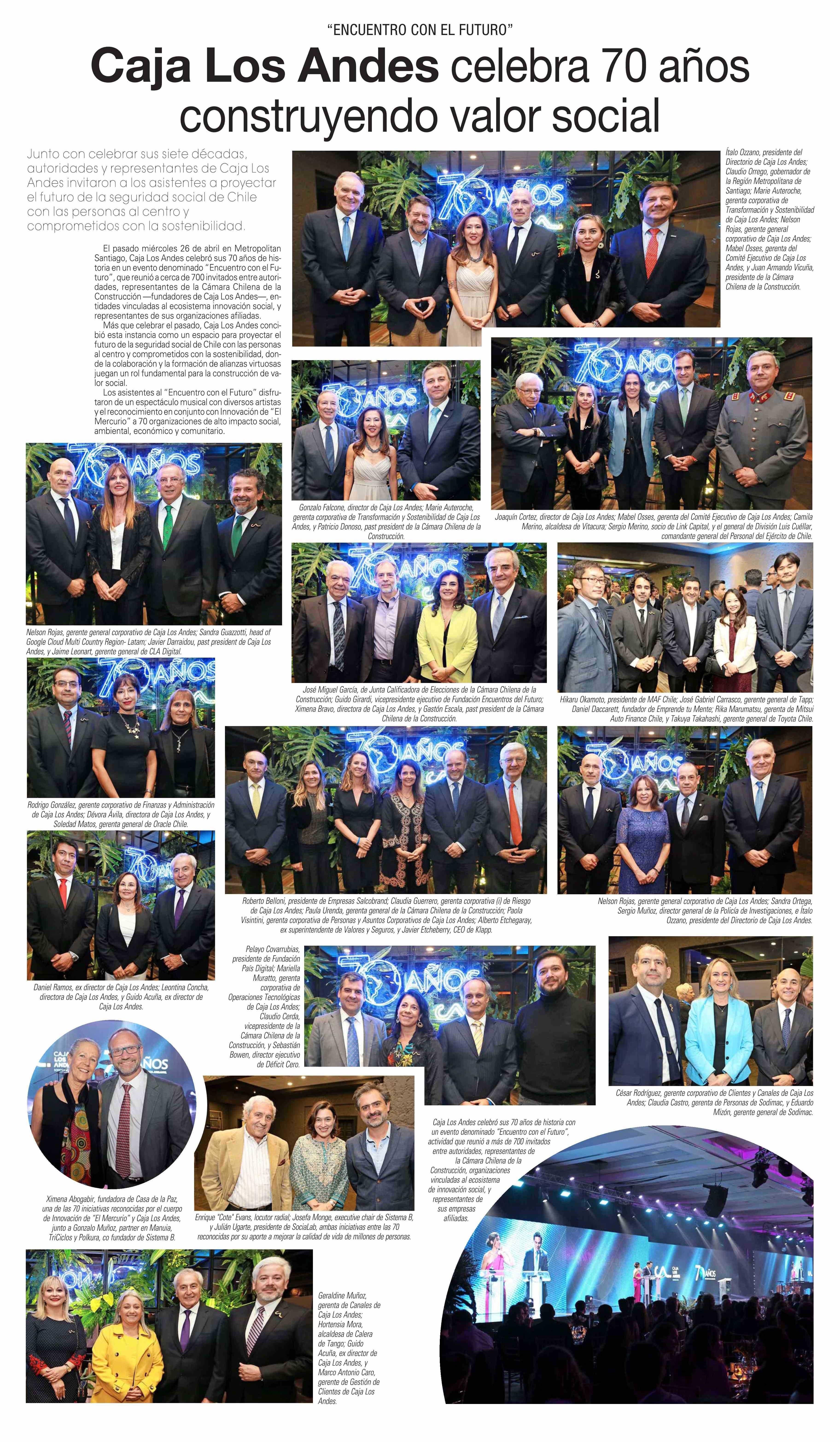 Caja Los Andes celebra 70 años construyendo valor social 06-05-2023 El Mercurio |