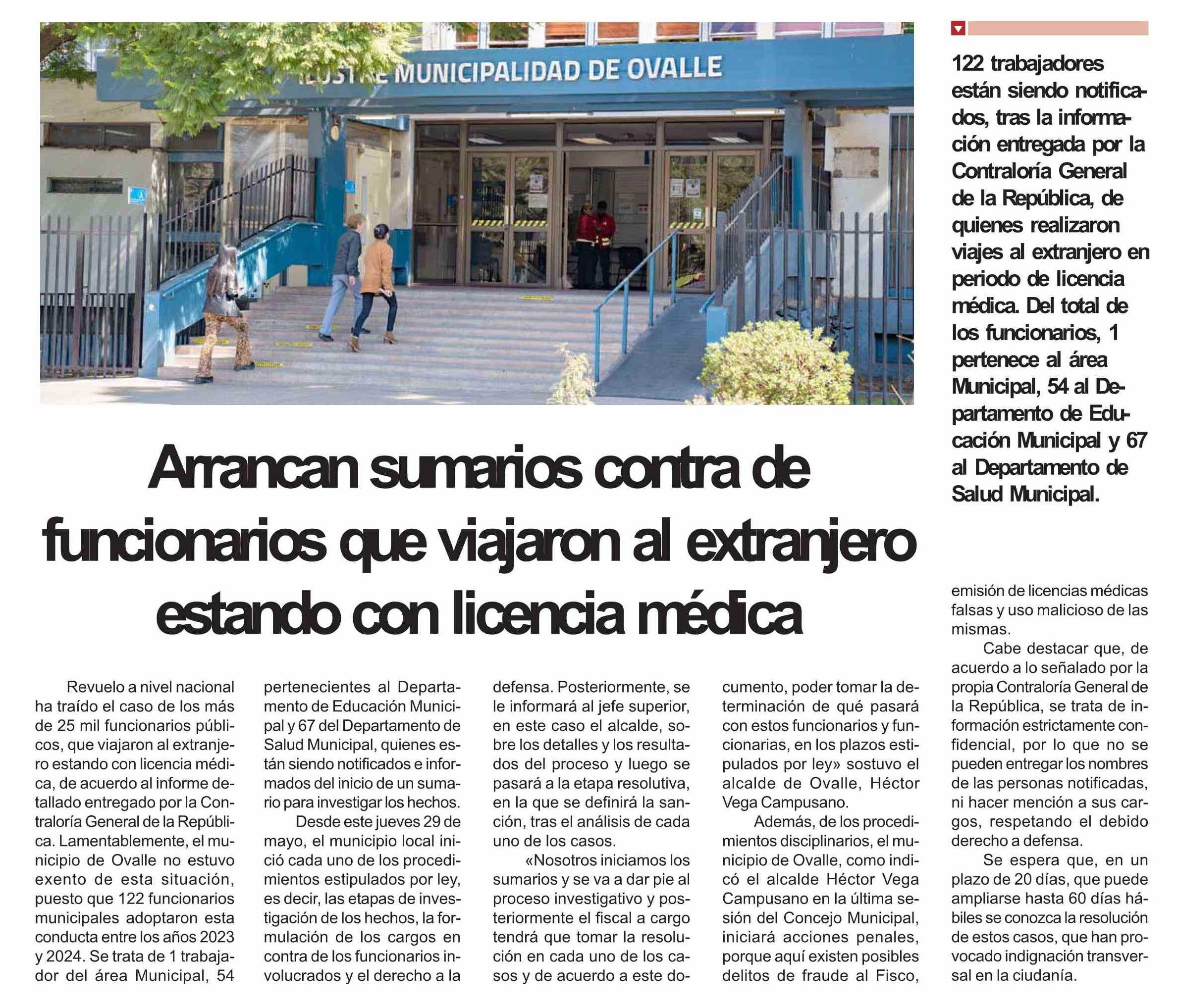 Arrancan sumarios contra de funcionarios que viajaron al extranjero estando con licencia médica 31-05-2025 Diario la Región |