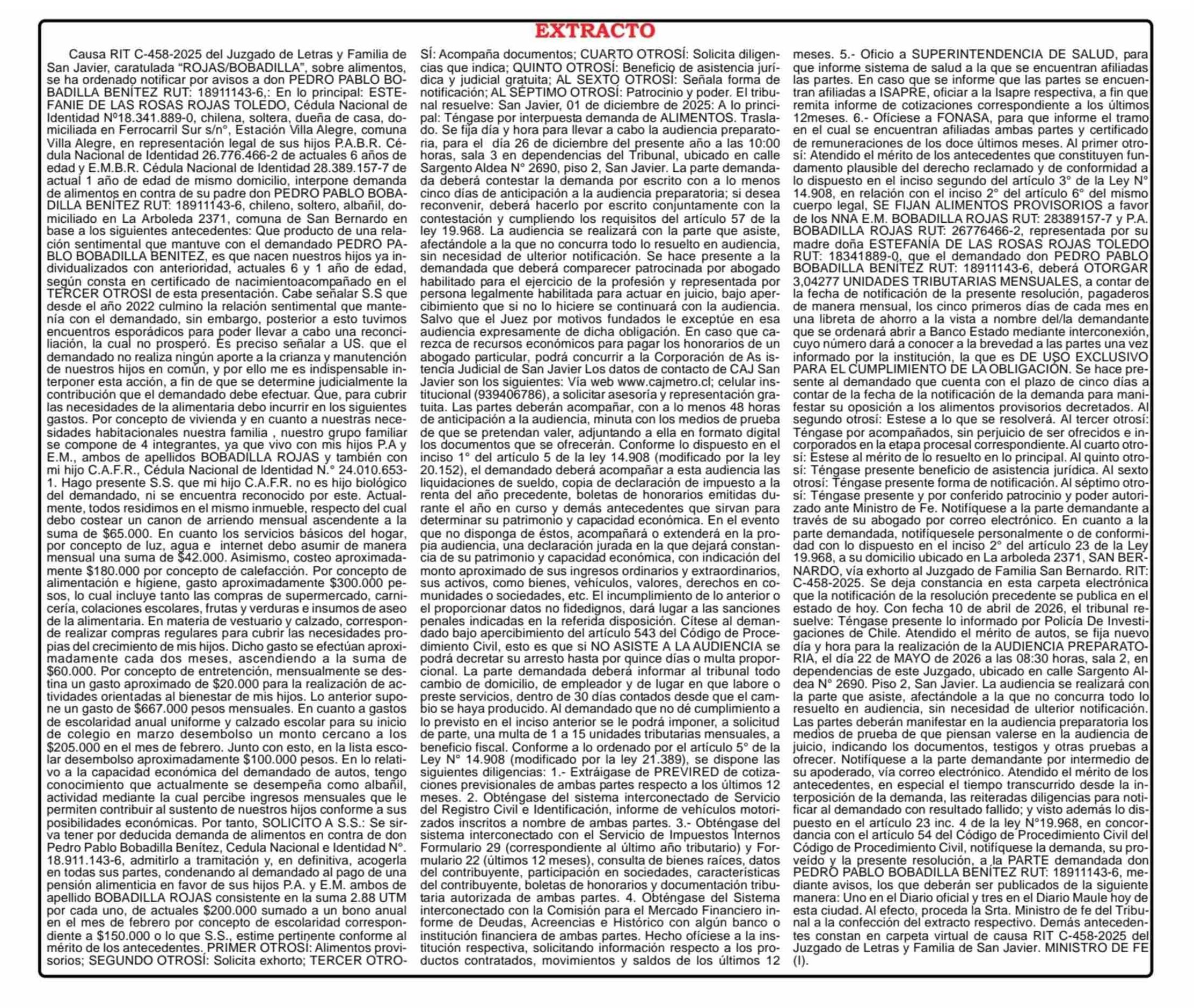 REMATES: EXTRACTO 23-04-2026 Maule Hoy |