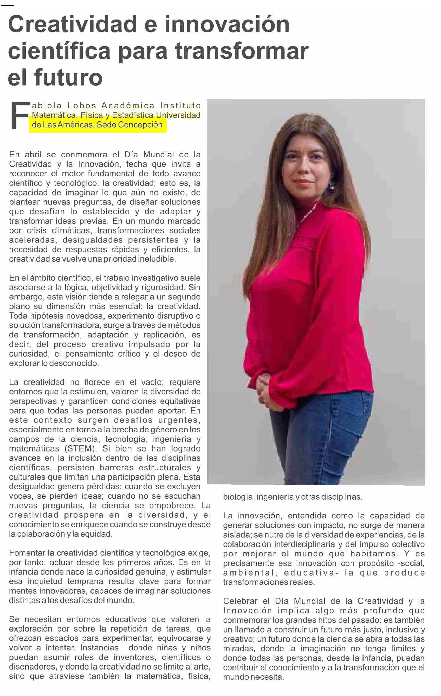 | Título: | COLUMNAS DE OPINIÓN: Creatividad e innovación científica para transformar el futuro |