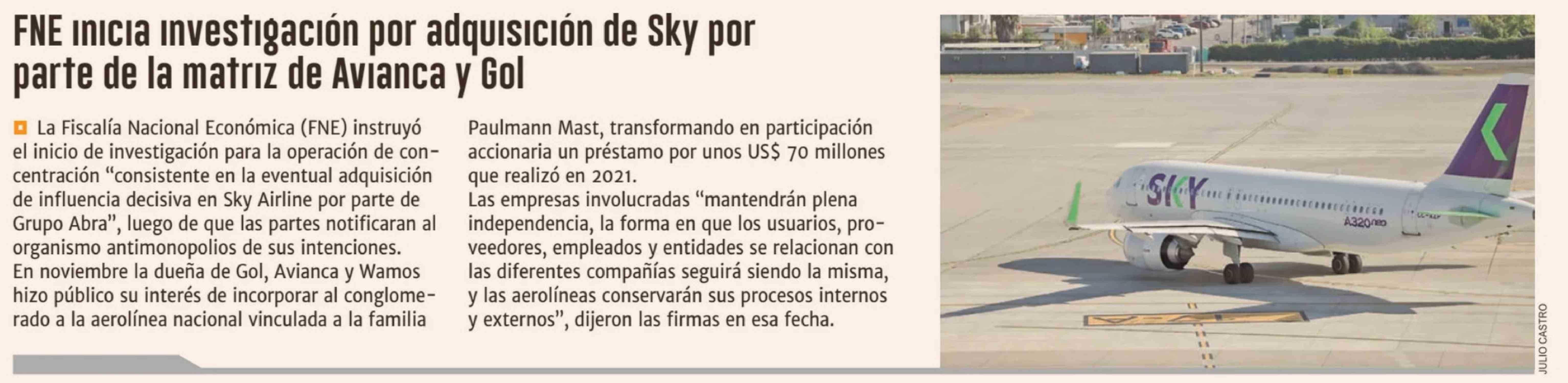 FNE Inicia Investigación por adquisición de Sky por parte de la matriz de Avianca y Gol 03-02-2026 Diario Financiero |