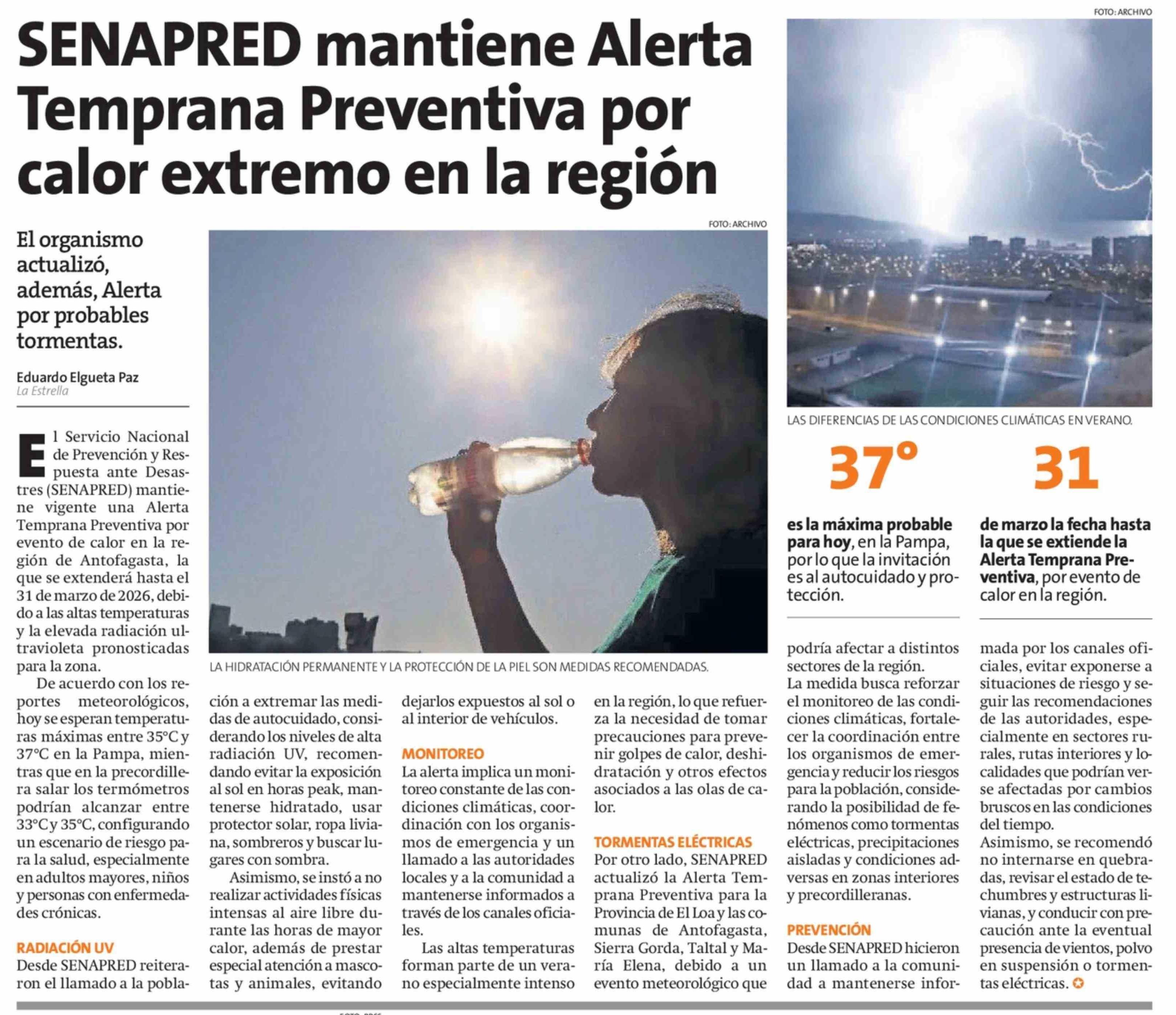 SENAPRED mantiene Alerta Temprana Preventiva por calor extremo en la región 07-02-2026 La Estrella de Antofagasta |