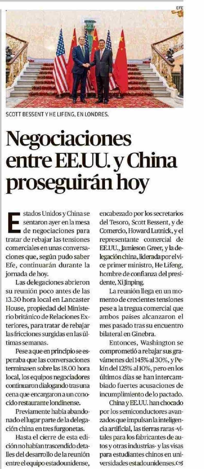 Negociaciones entre EEUU. y China proseguirán hoy 10-06-2025 El Austral de la Araucanía |