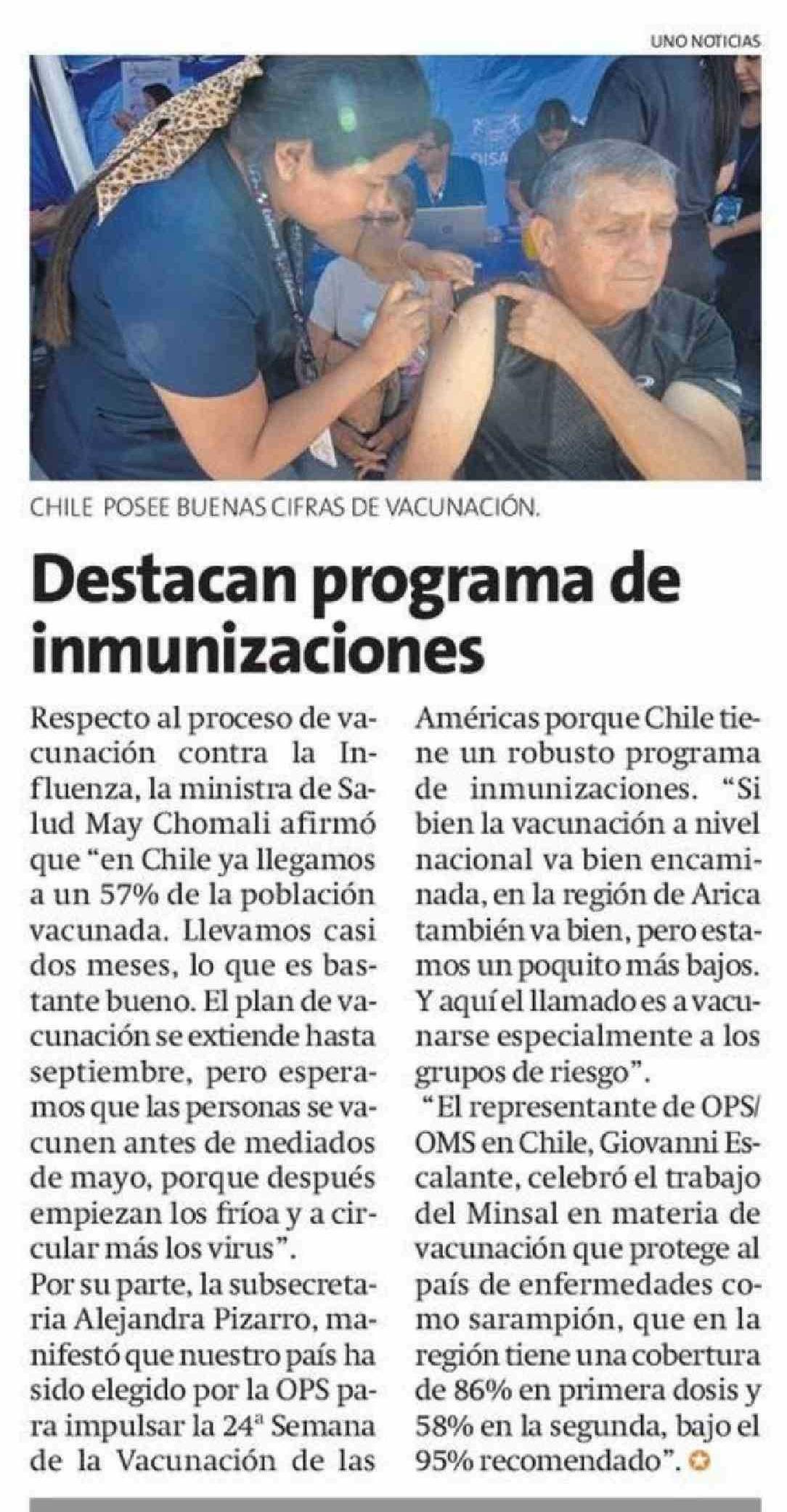 Destacan programa de inmunizaciones 26-04-2026 La Estrella de Arica |