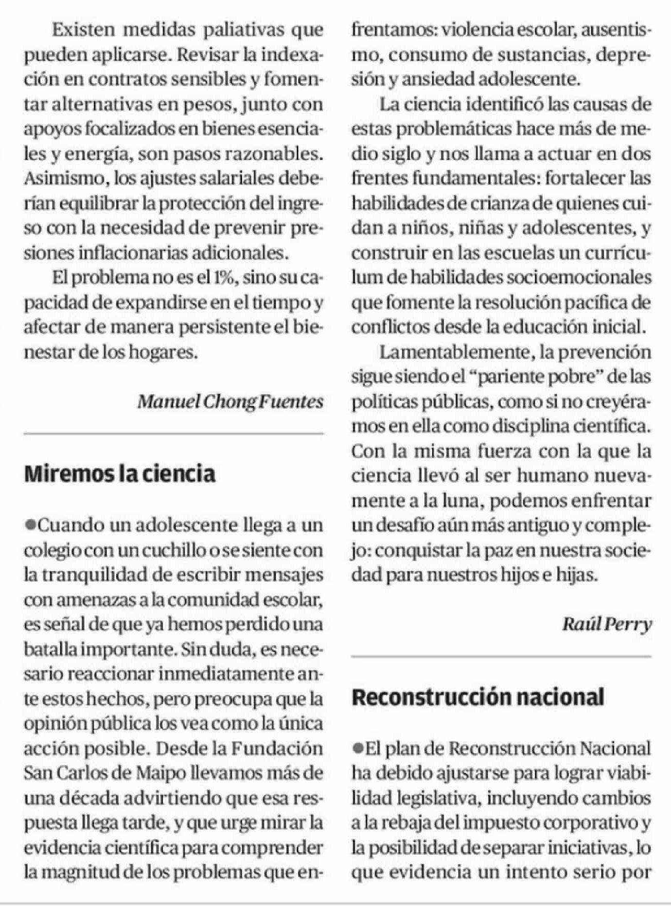 Cartas: Miremos la ciencia 10-04-2026 El Mercurio de Calama |