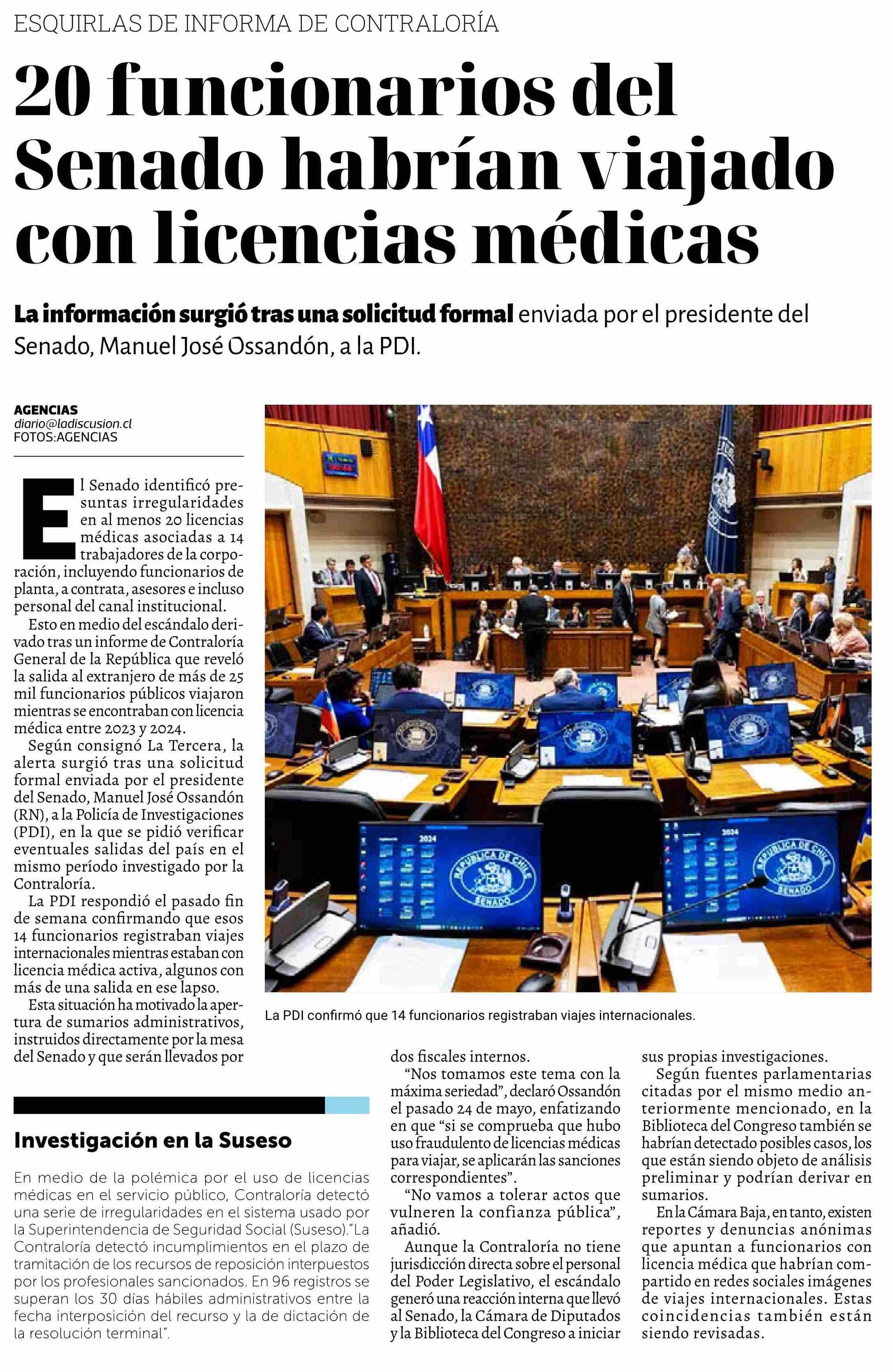 20 Funcionarios del Senado habrían viajado con licencias médicas 11-06-2025 La Discusión |