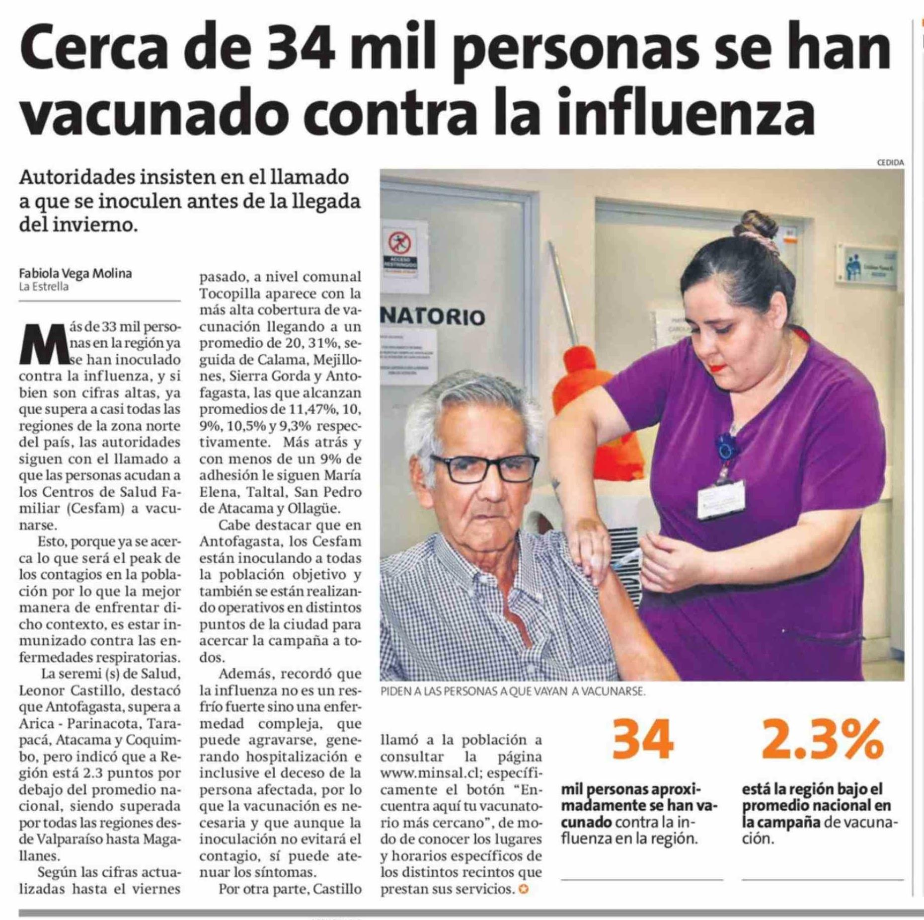 Título: Cerca de 34 mil personas se han vacunado contra la influenza