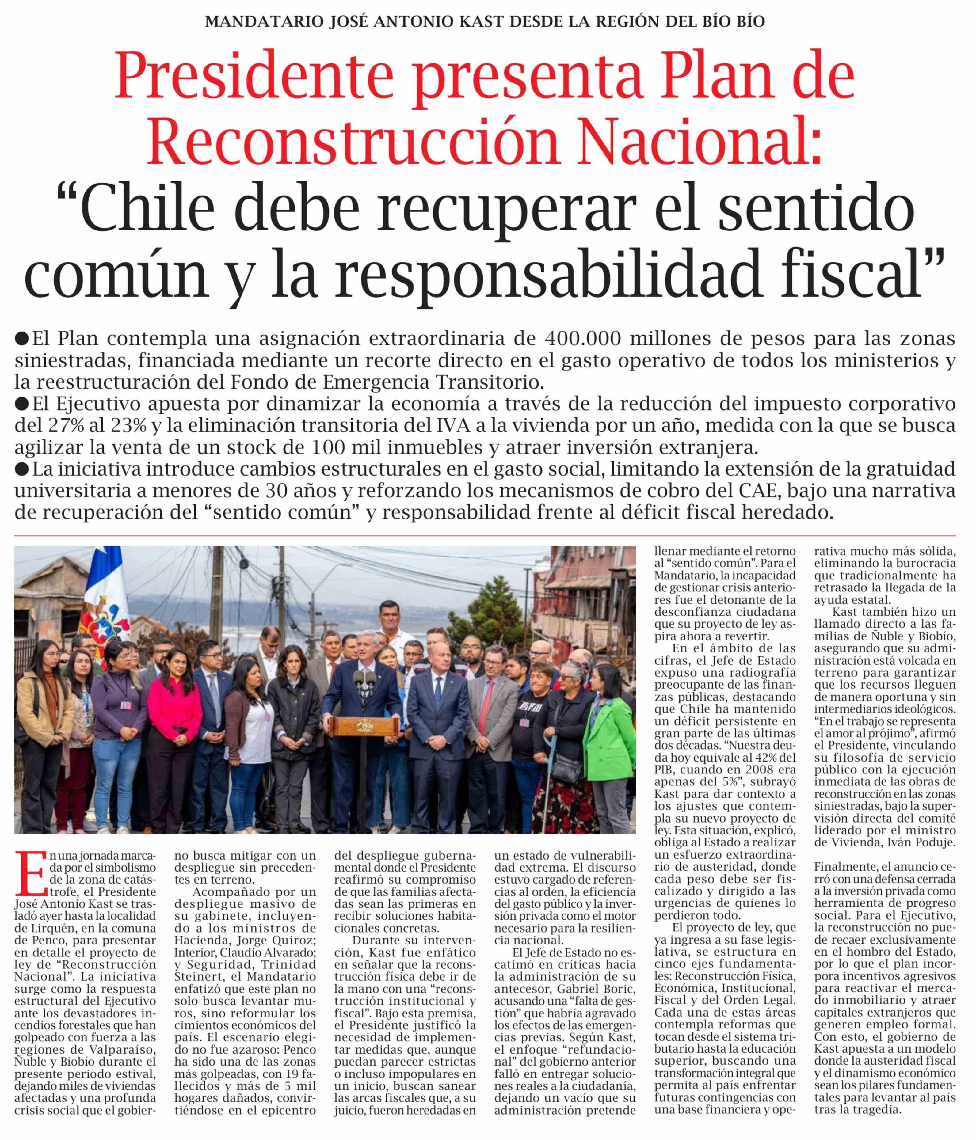 Título: Presidente presenta Plan de Reconstrucción Nacional: "Chile debe recuperar el sentido común y la responsabilidad fiscal"
