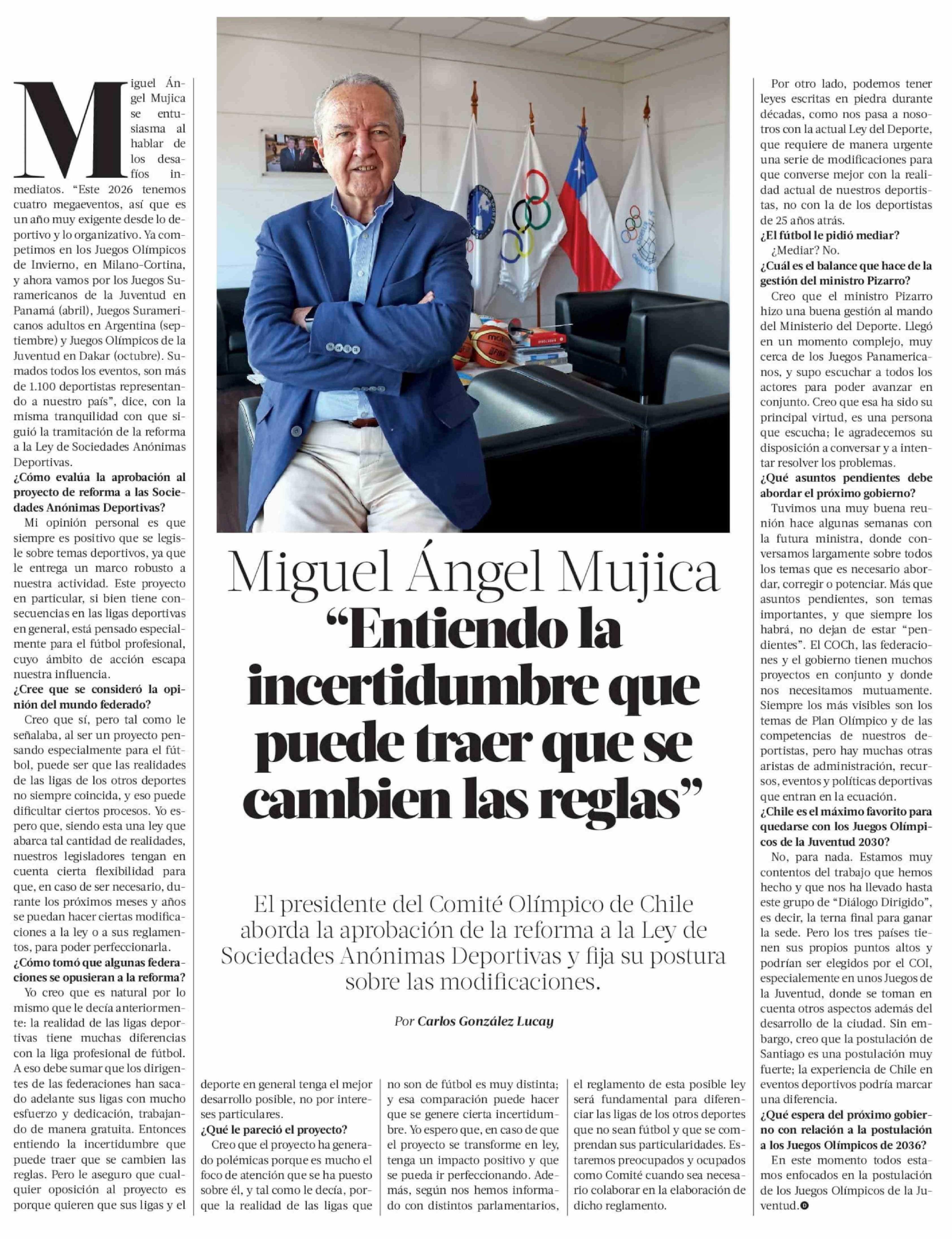 Miguel Ángel Mujica "Entiendo la incertidumbre que puede traer que se cambien las reglas" 08-03-2026 La Tercera |