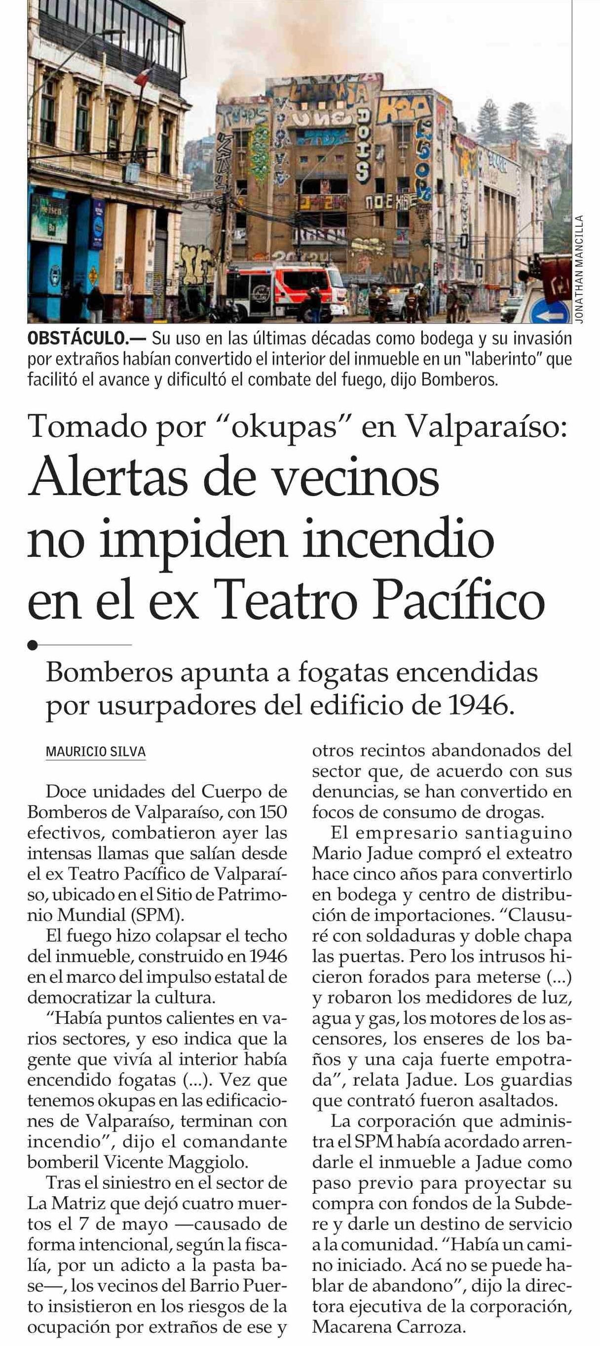 Alertas de vecinos no impiden incendio en el ex Teatro Pacífico 07-06-2025 El Mercurio |