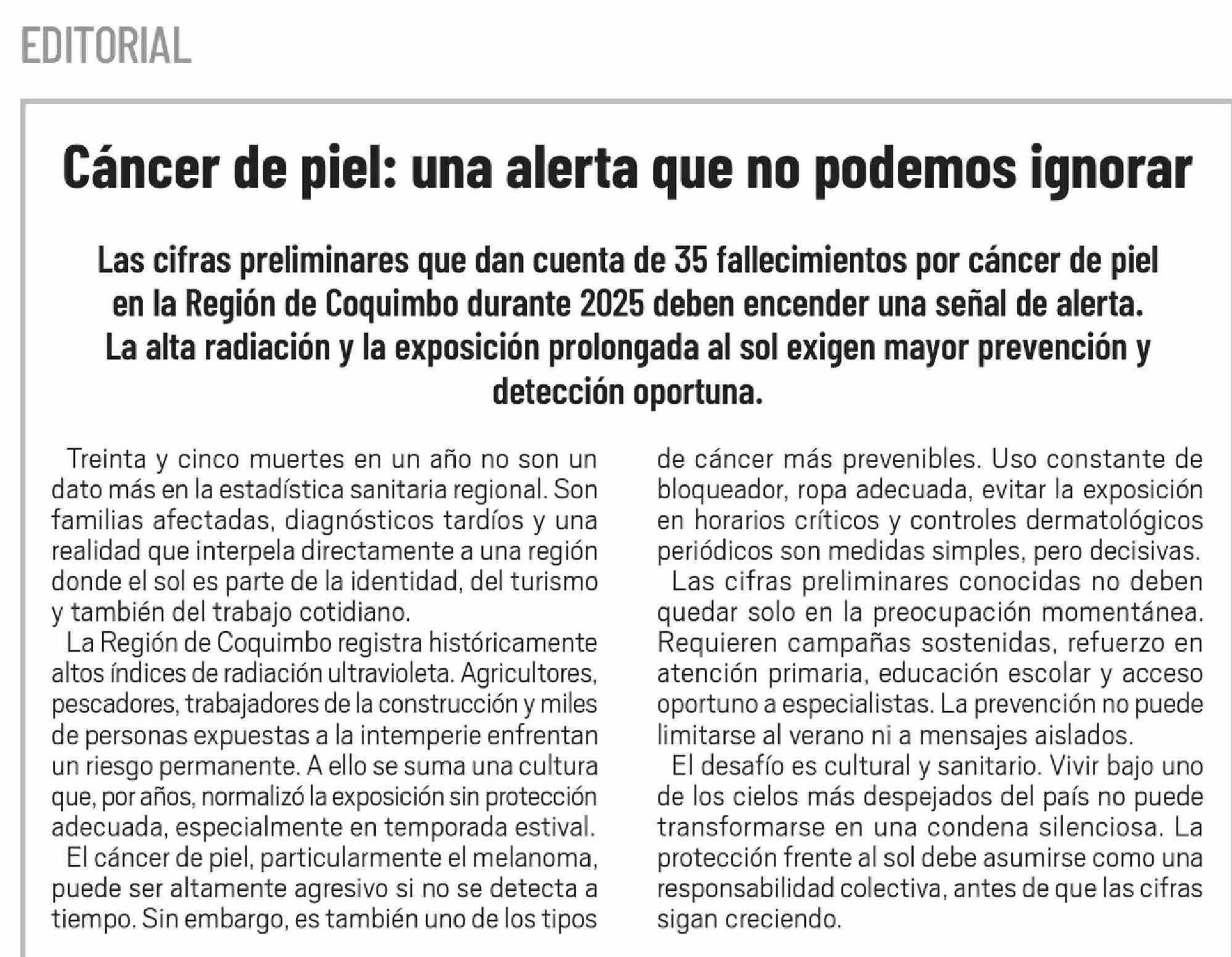 Editorial: Cáncer de piel: una alerta que no podemos ignorar 18-02-2026 El Día |