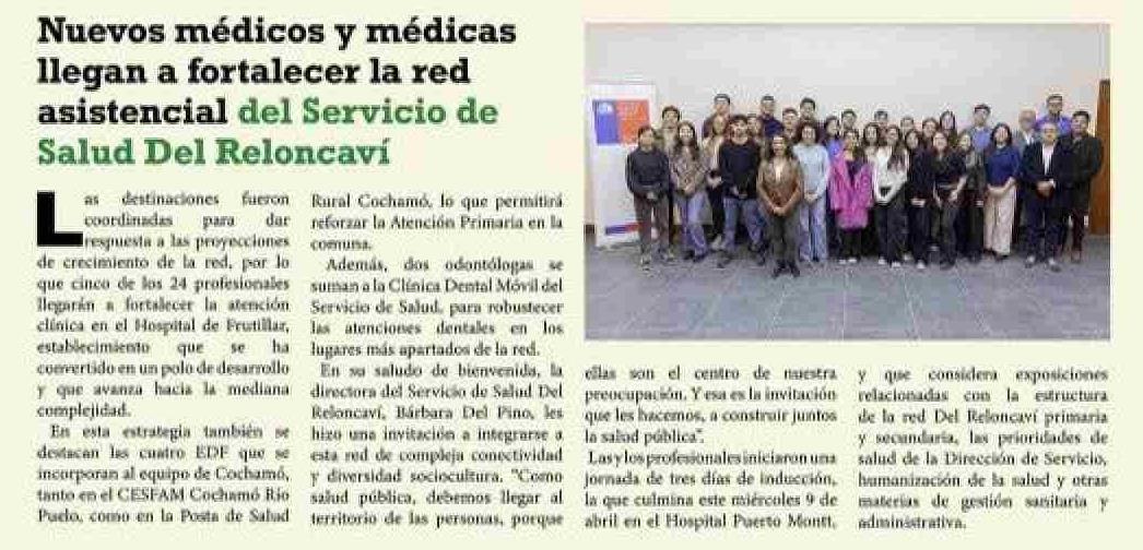 Nuevos médicos y médicas llegan a fortalecer la red asistencial del Servicio de Salud Del Reloncaví 09-04-2025 El Heraldo Austral |