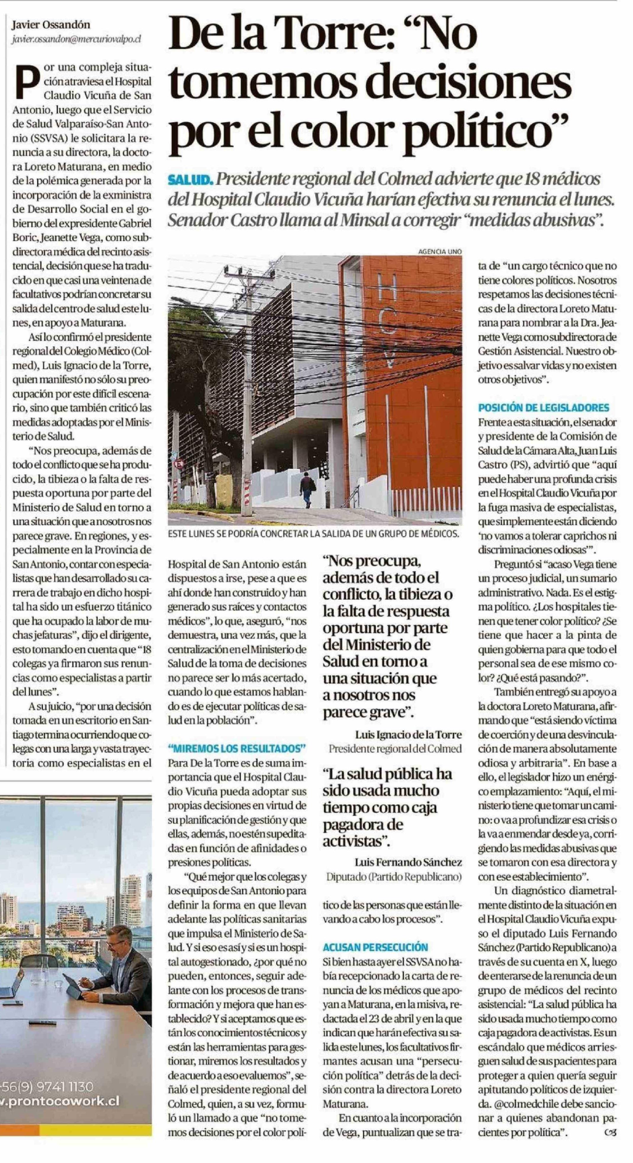 Título: De la Torre: "No tomemos decisiones por el color político"