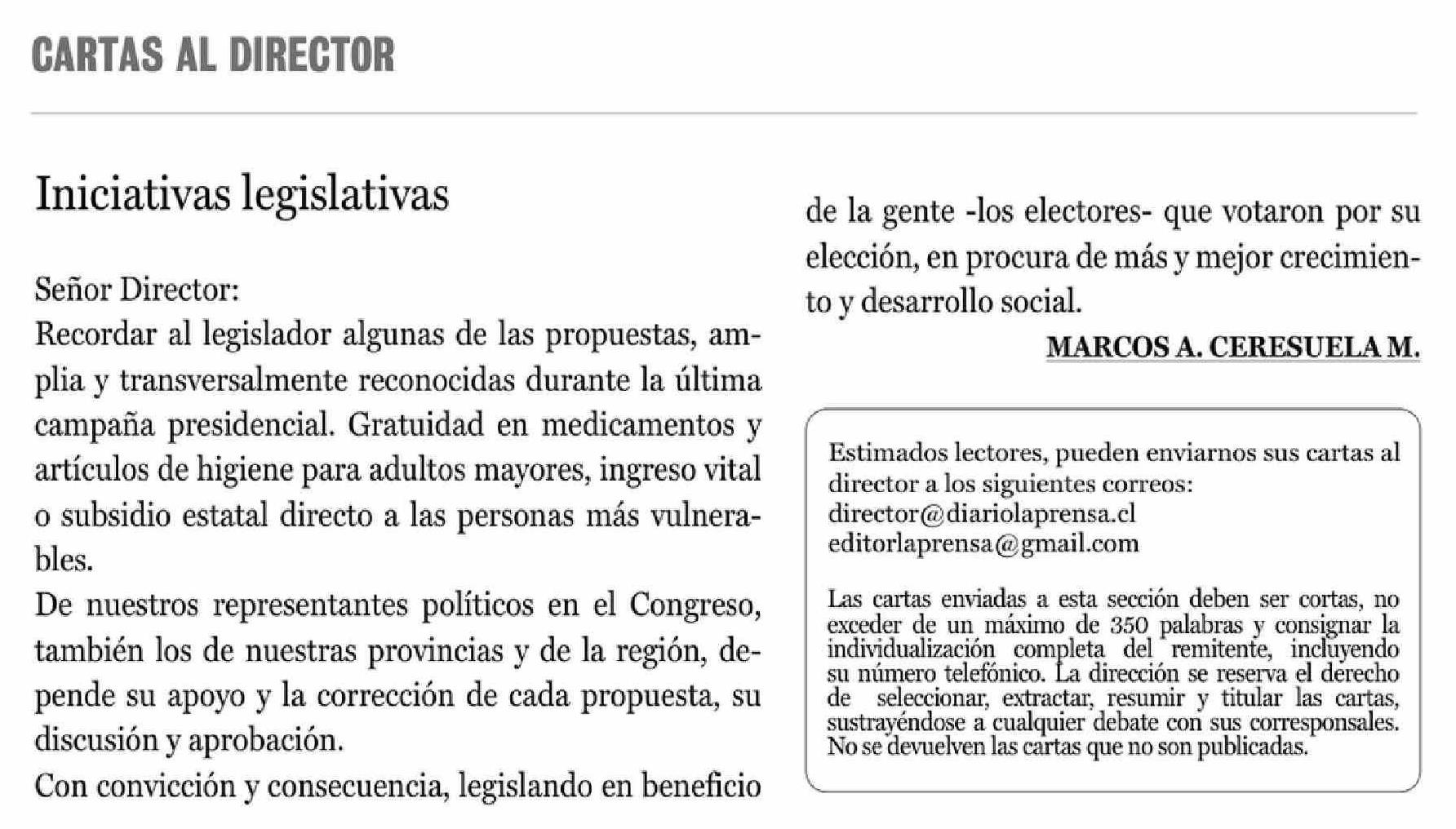 Cartas: Iniciativas legislativas