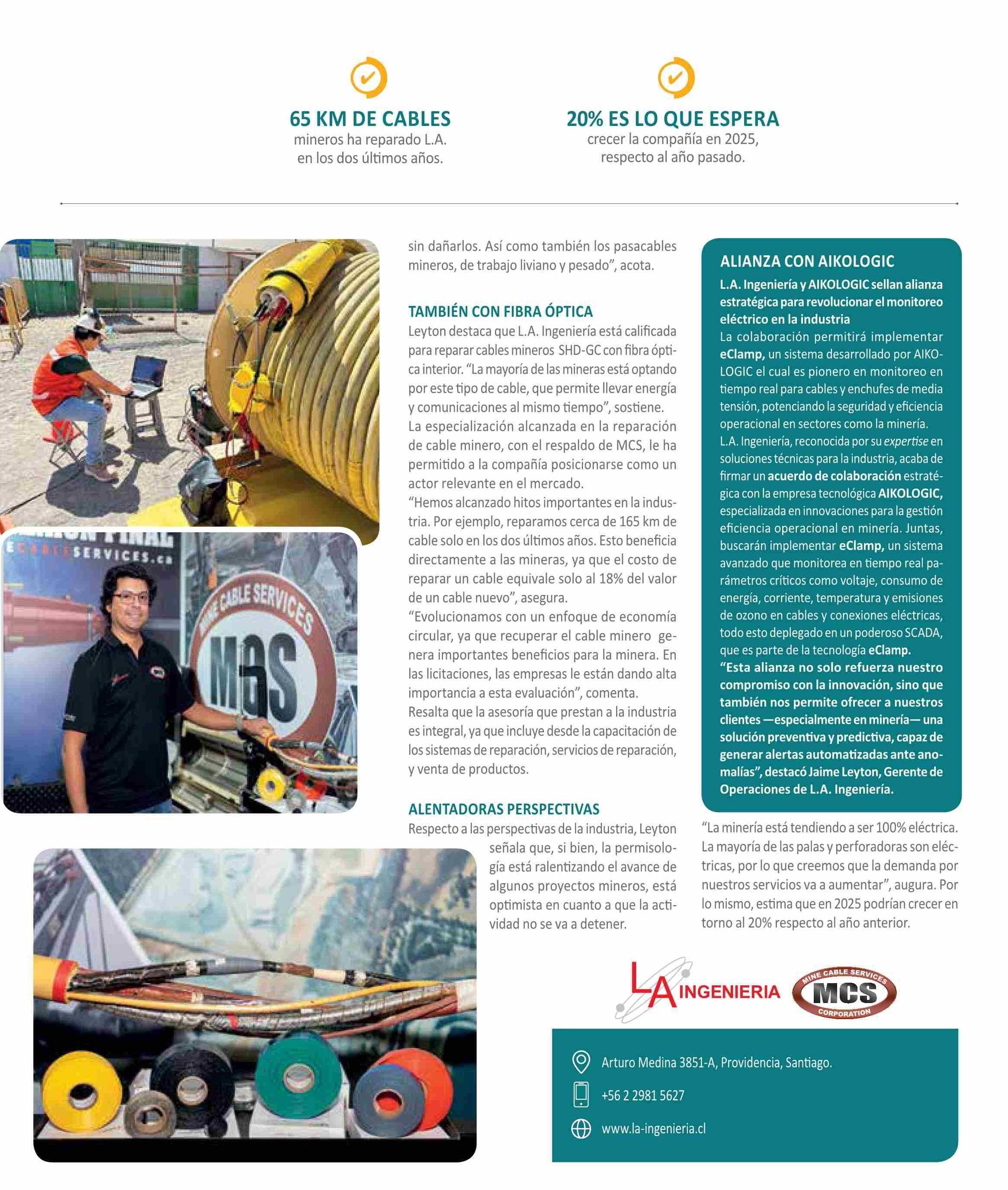 L.A. INGENIERÍA EXHIBIÓ EN EXPOMIN INNOVACIONES PARA LA REPARACIÓN DE CABLES MINEROS 27-05-2025 Revista Minería Chilena |