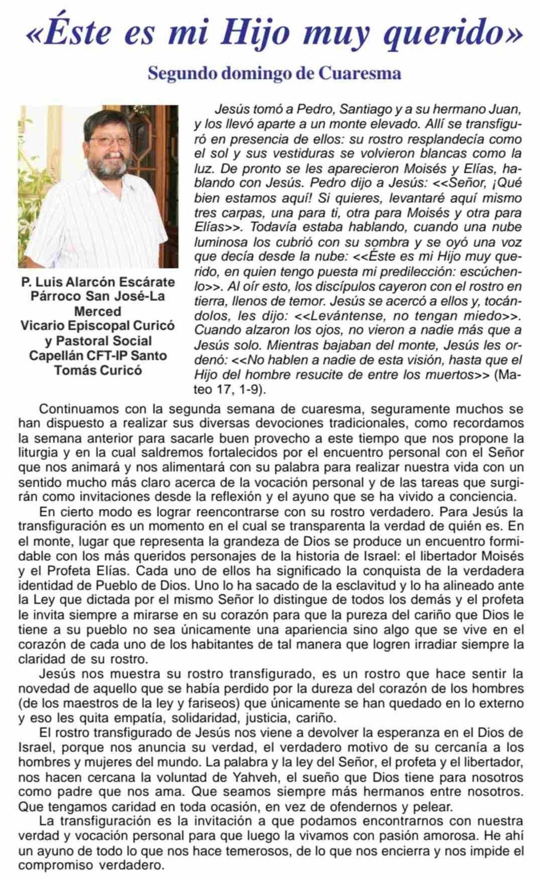 COLUMNAS DE OPINIÓN: «Éste es mi Hijo muy querido» 01-03-2026 Maule Hoy |