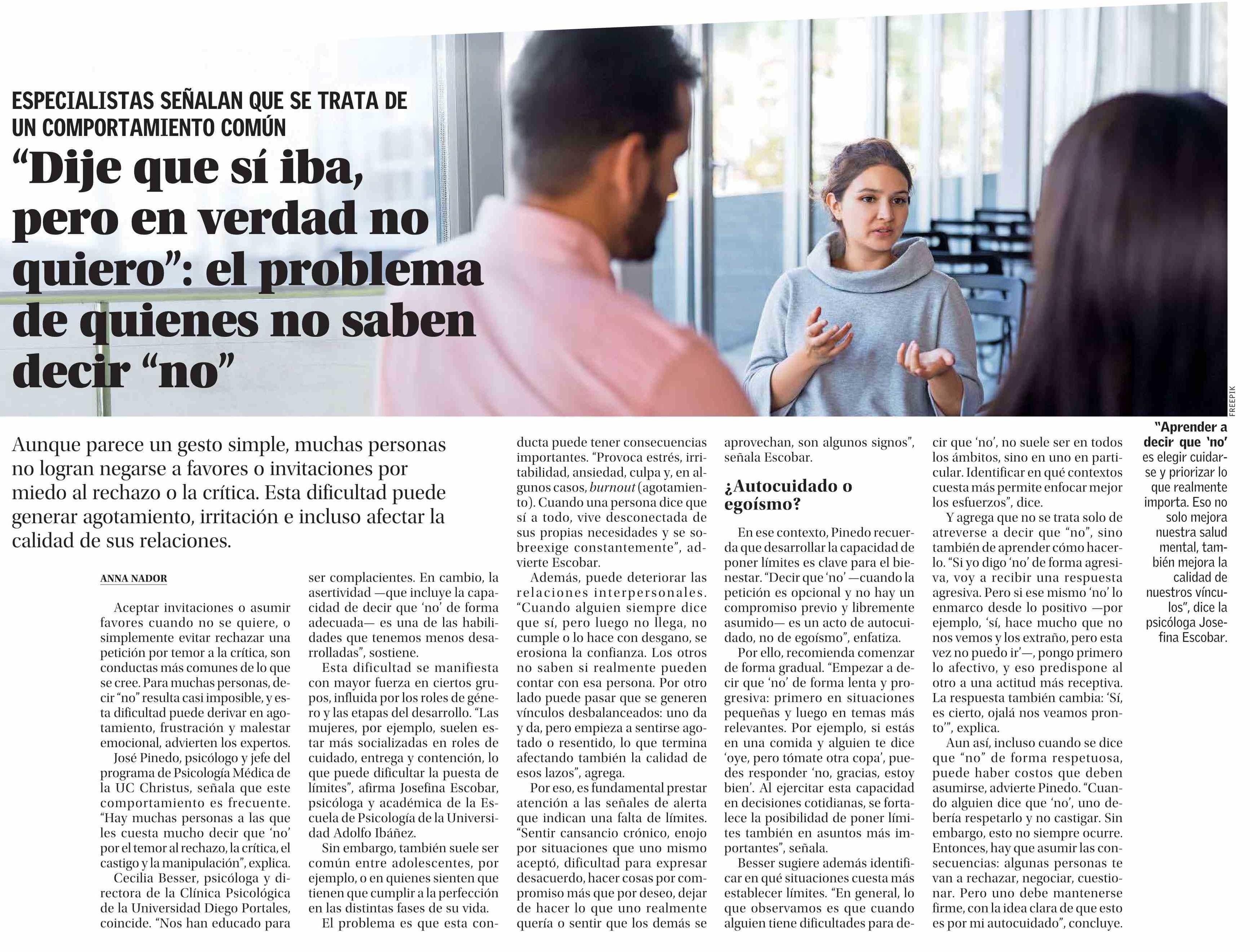 “Dije que sí iba, pero en verdad no quiero”: el problema de quienes no saben decir “no” 21-05-2025 El Mercurio |