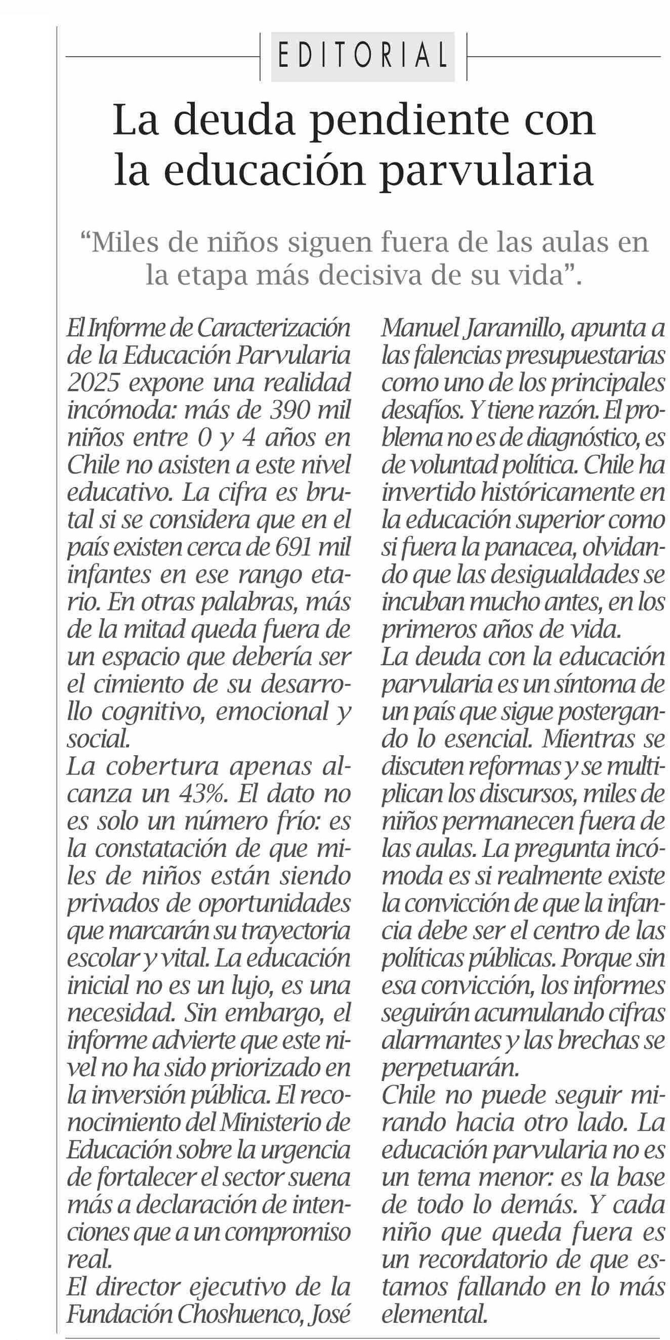 Título: EDITORIAL: La deuda pendiente con la educación parvularia