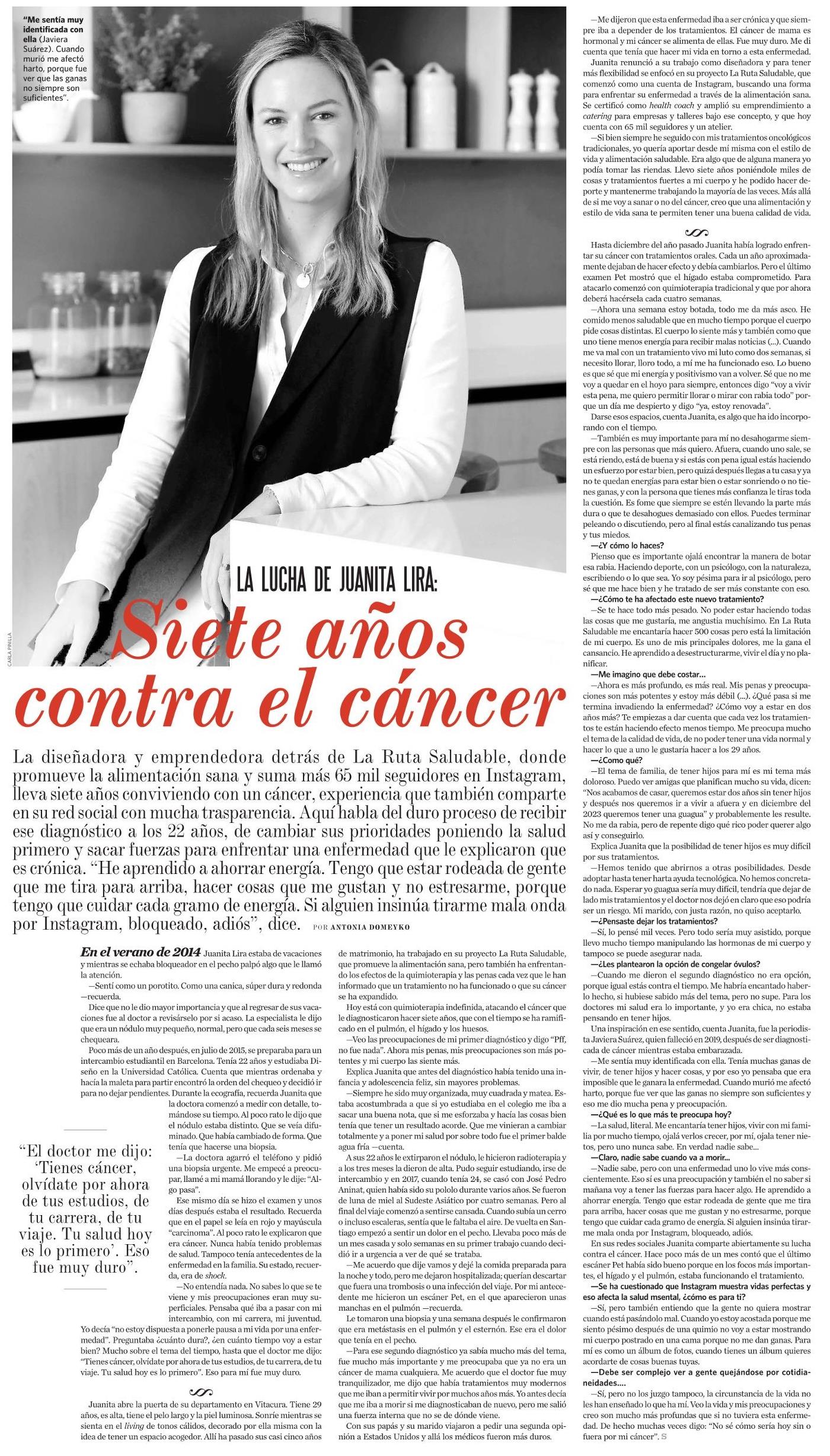 LA LUCHA DE JUANITA LIRA: Siete años contra el cáncer 23-07-2022 El Mercurio |