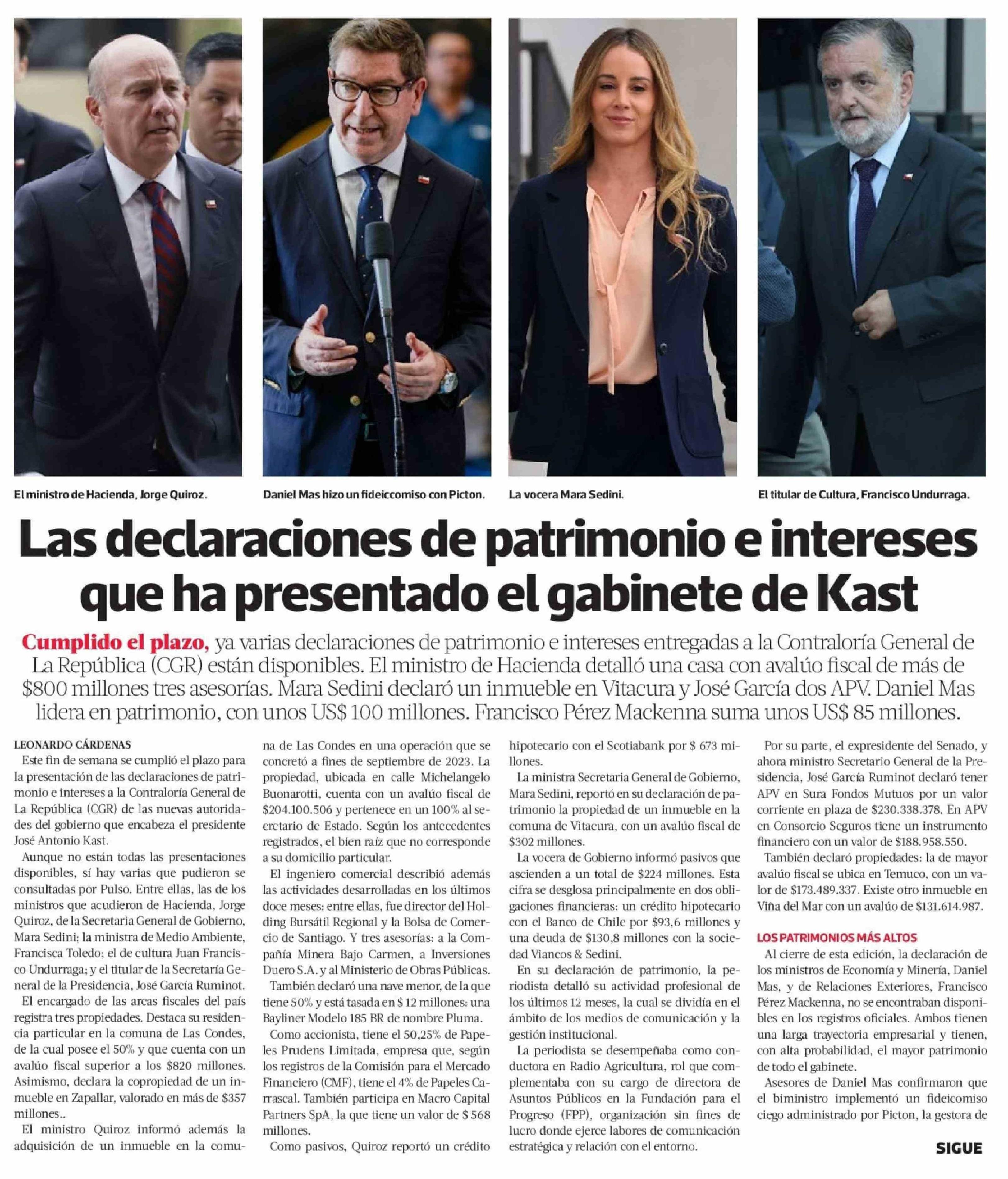 Título: Las declaraciones de patrimonio e intereses que ha presentado el gabinete de Kast