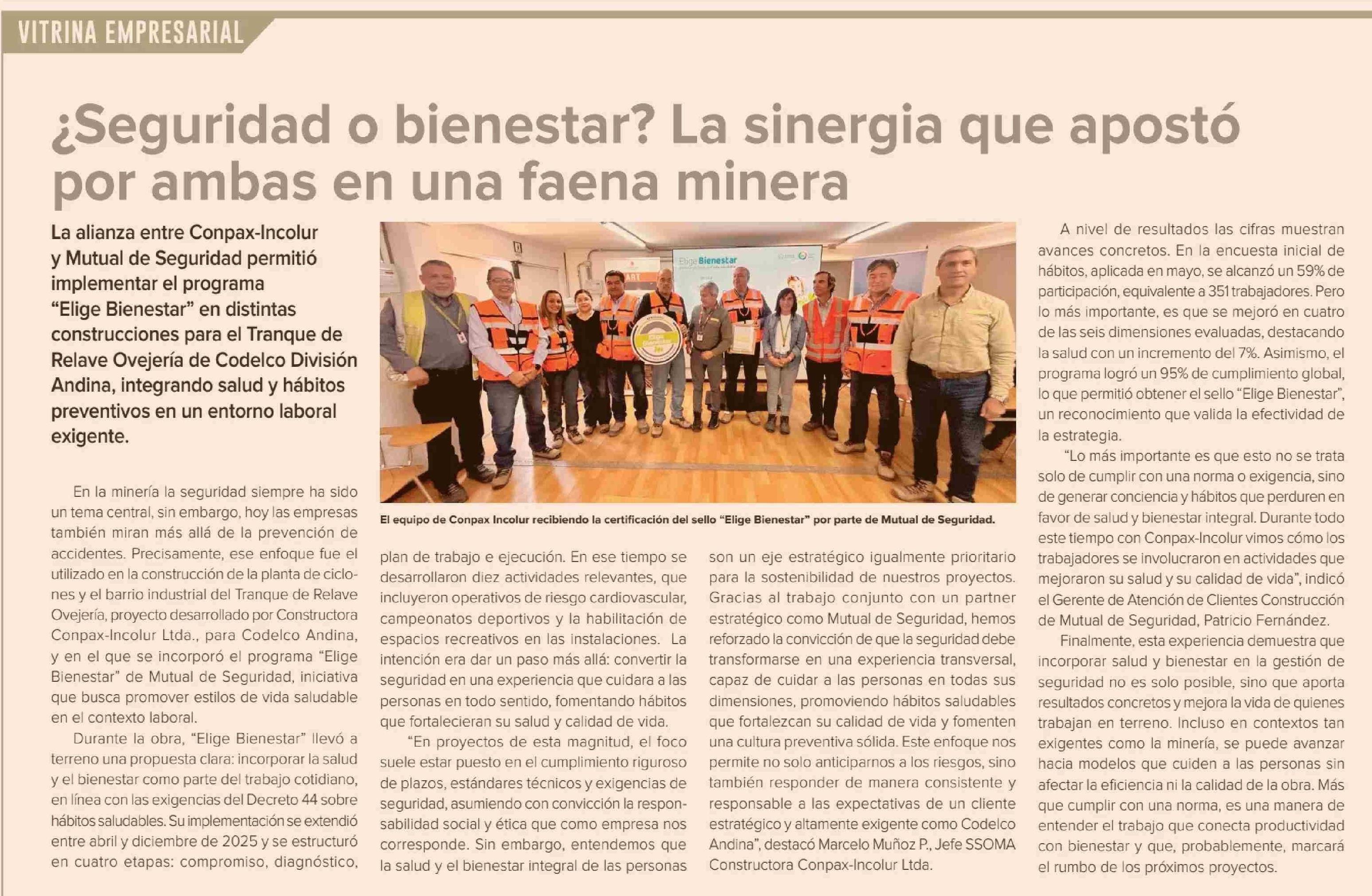 ¿Seguridad o bienestar? La sinergia que apostó por ambas en una faena minera 13-01-2026 Diario Financiero |