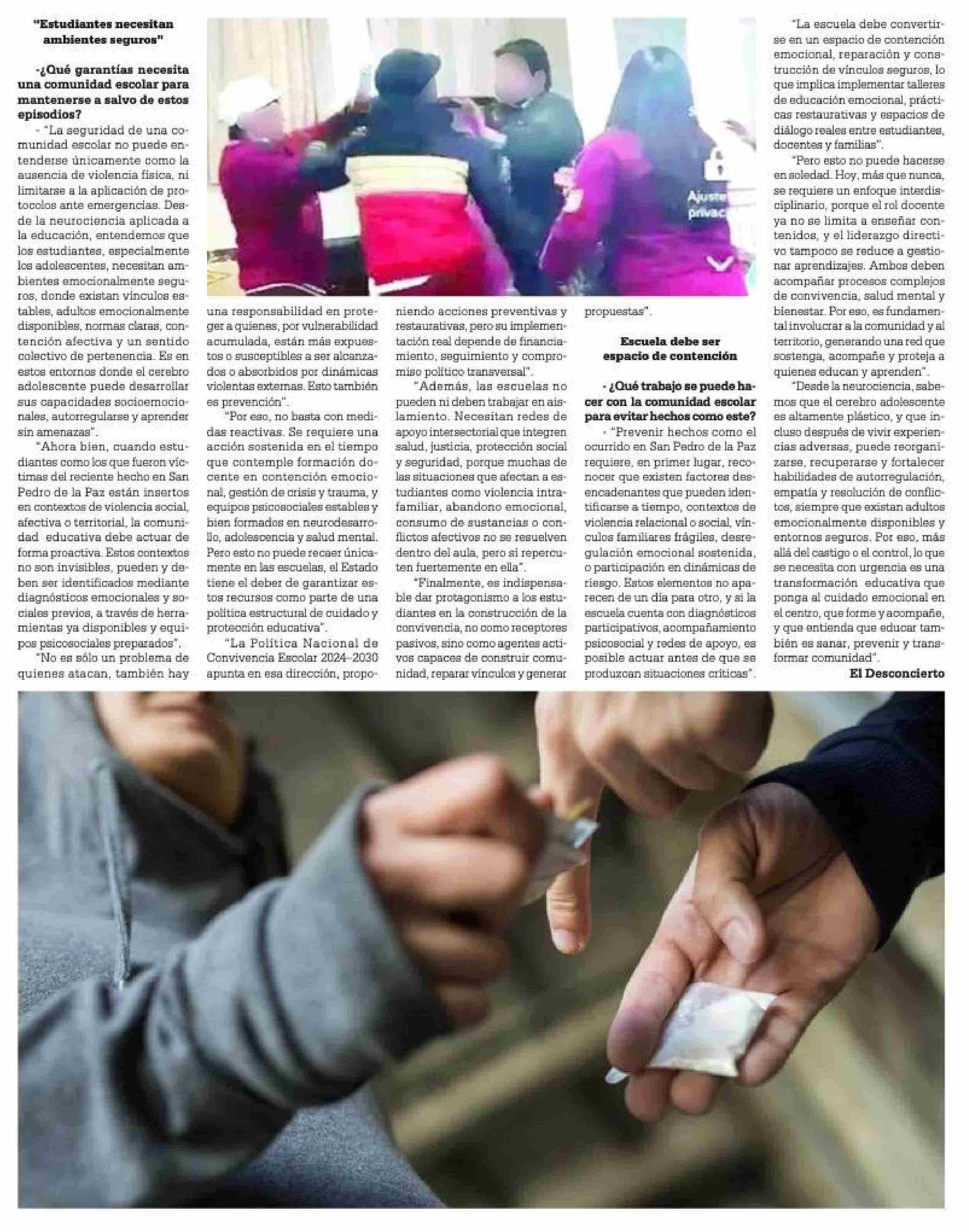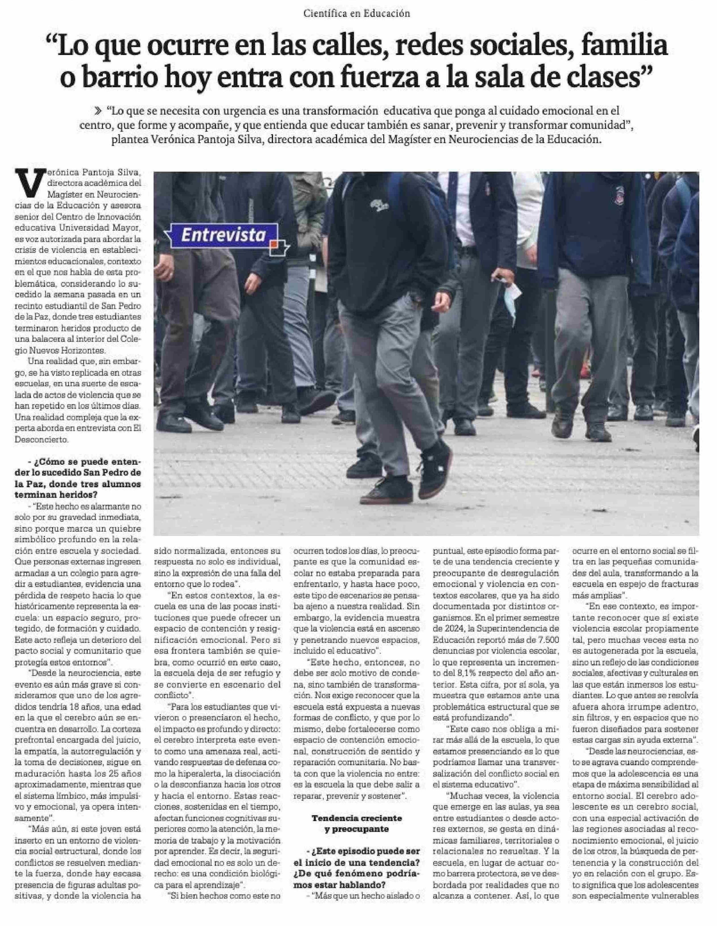 | Título: | “Lo que ocurre en las calles, redes sociales, familia O barrio hoy entra con fuerza a la sala de clases” |
