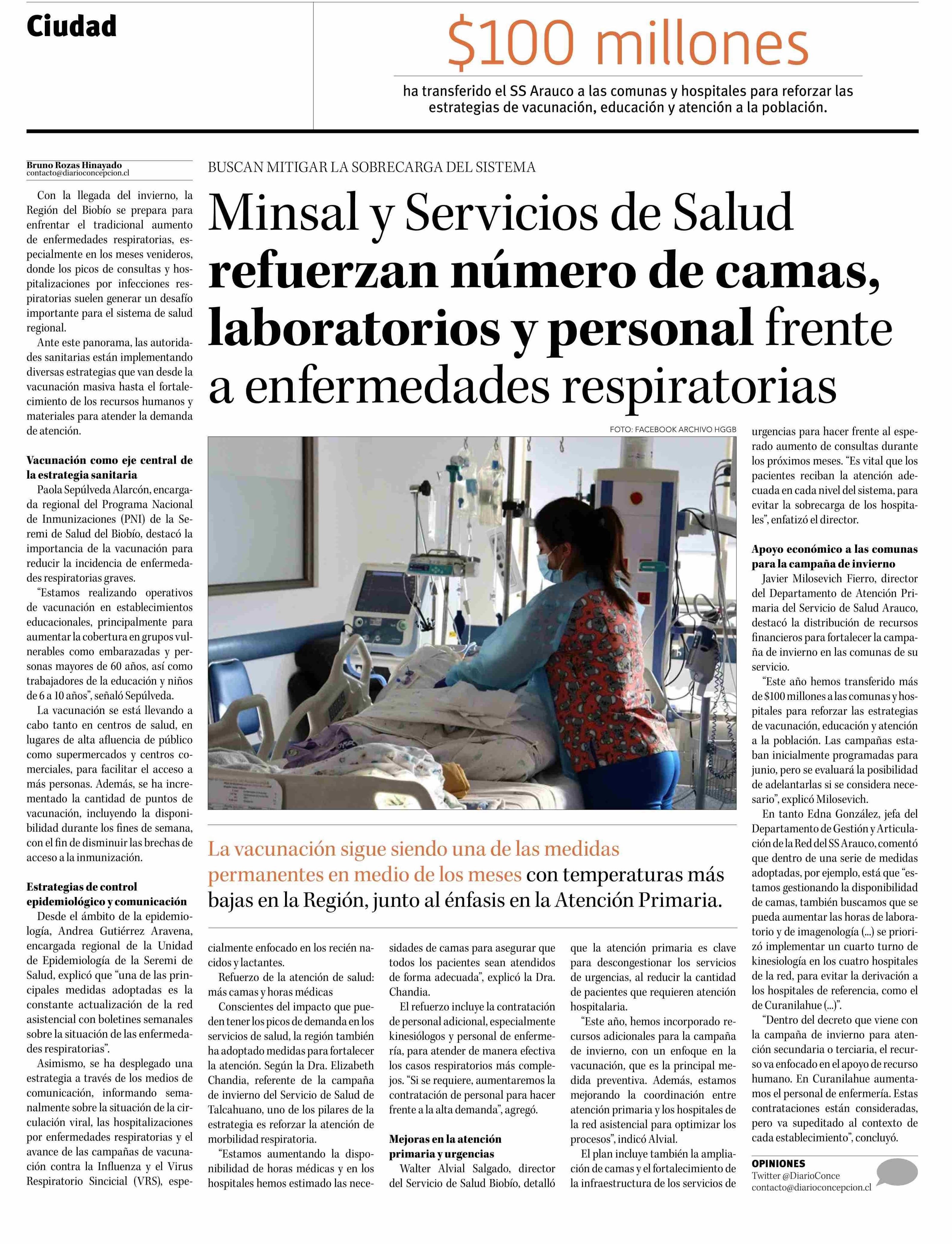 Minsal y Servicios de Salud refuerzan número de camas, laboratorios y personal frente a enfermedades respiratorias 17-05-2025 Diario Concepción |