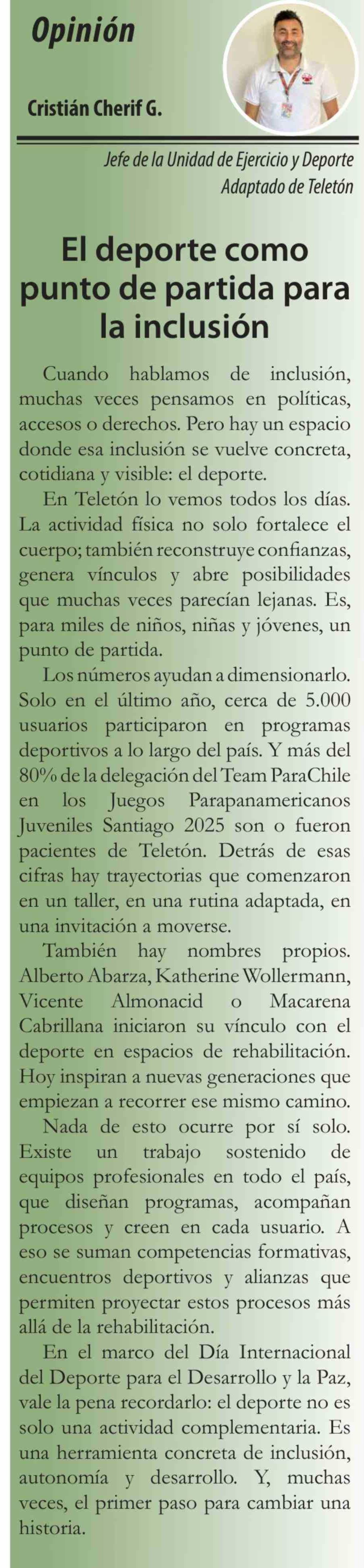 Columnas de Opinión: El deporte como punto de partida para la inclusión 09-04-2026 El Divisadero |
