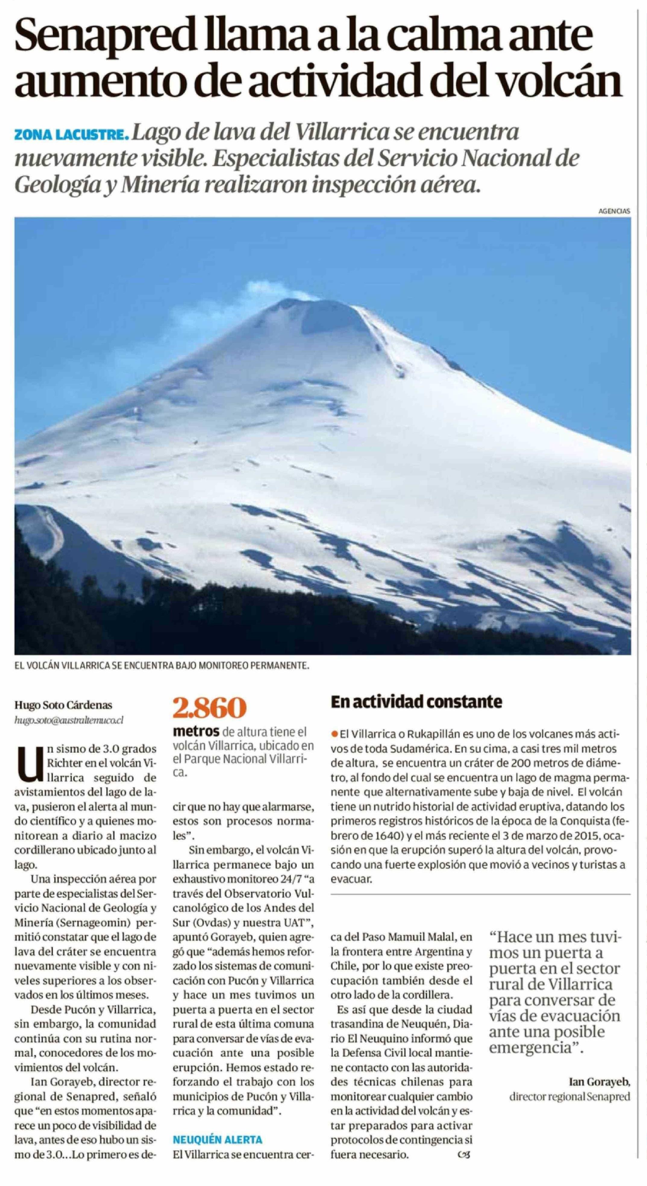 Título: Senapred llama a la calma ante aumento de actividad del volcán