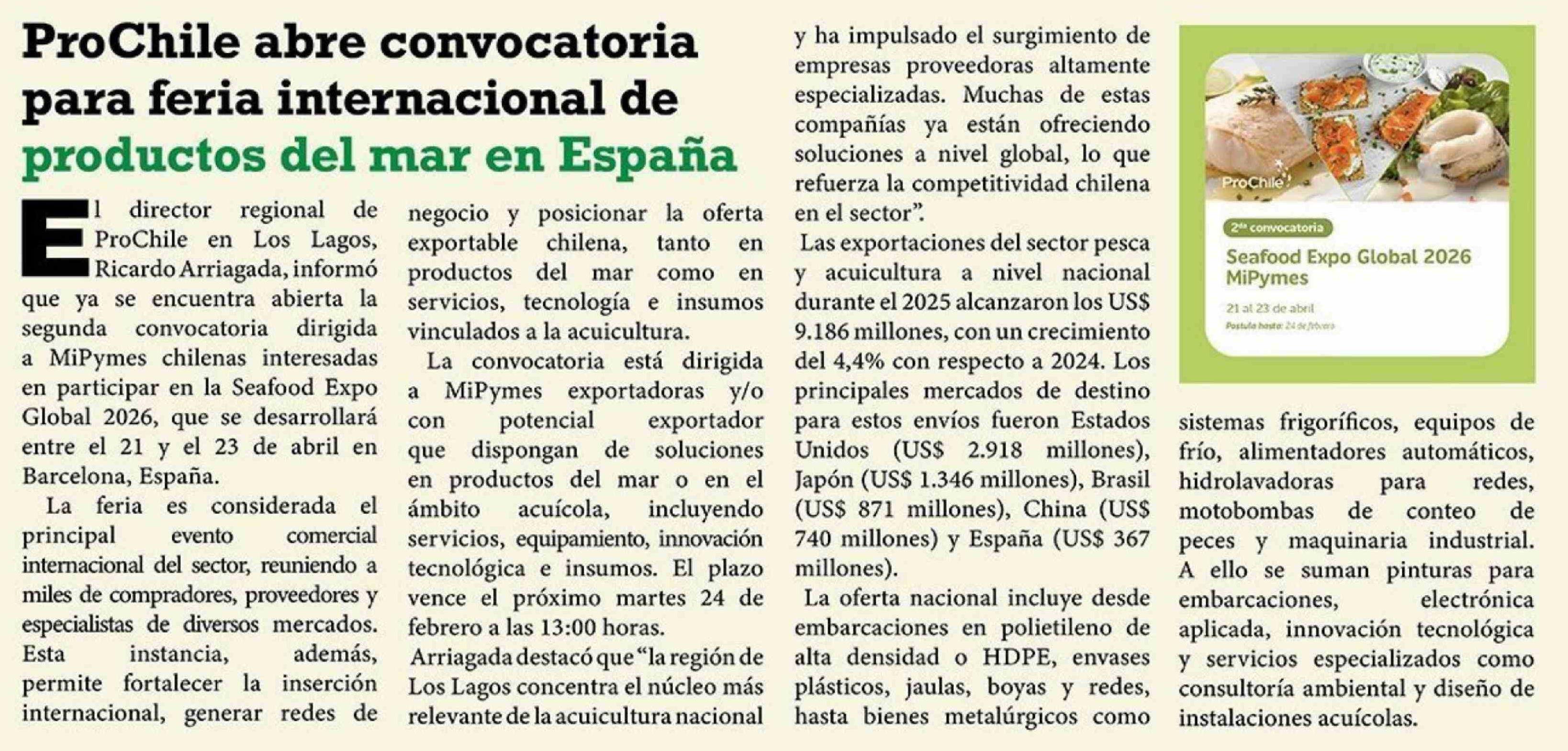 Título: ProChile abre convocatoria para feria internacional de productos del mar en España