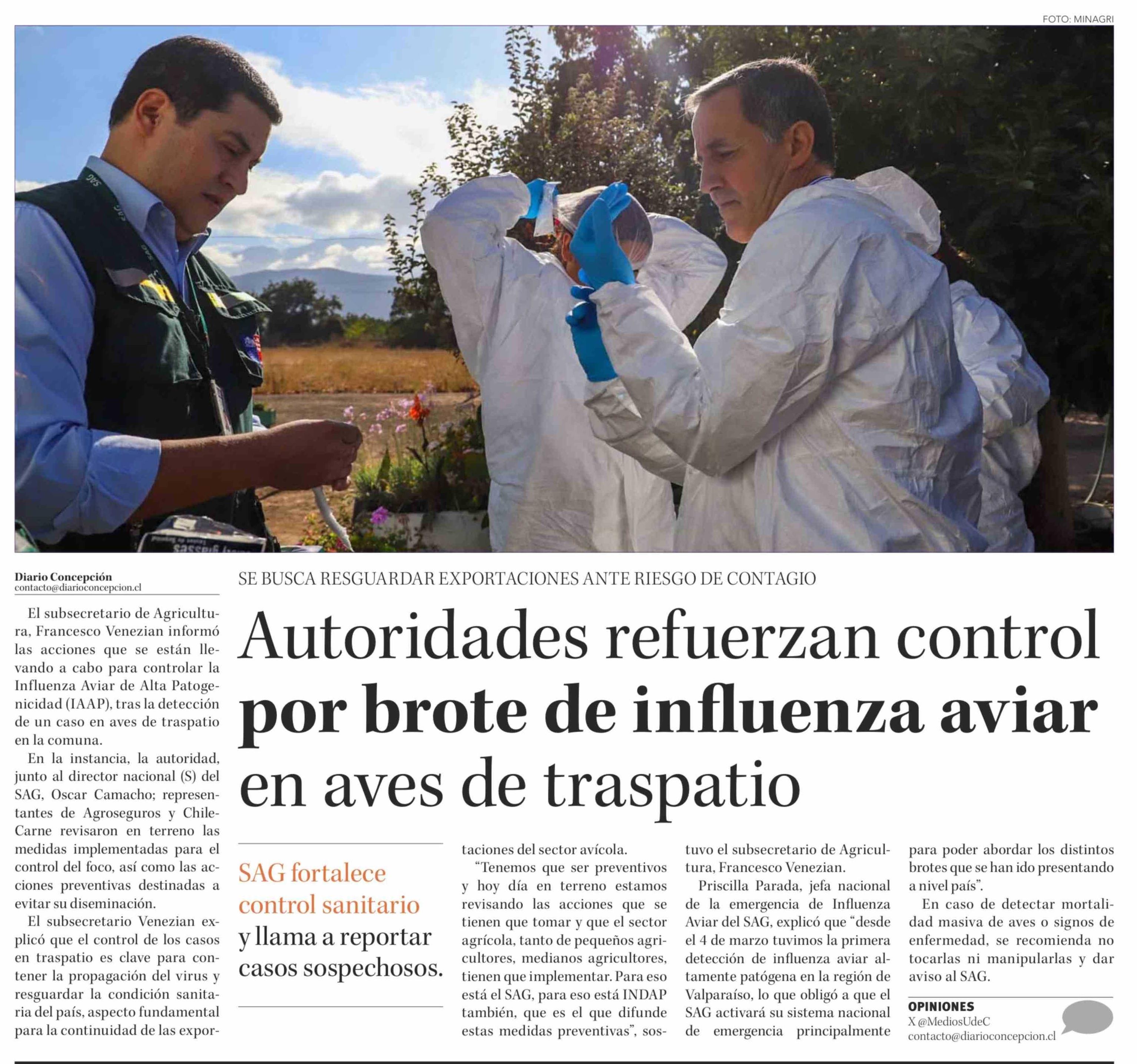 Autoridades refuerzan control por brote de influenza aviar en aves de traspatio 23-03-2026 Diario Concepción |