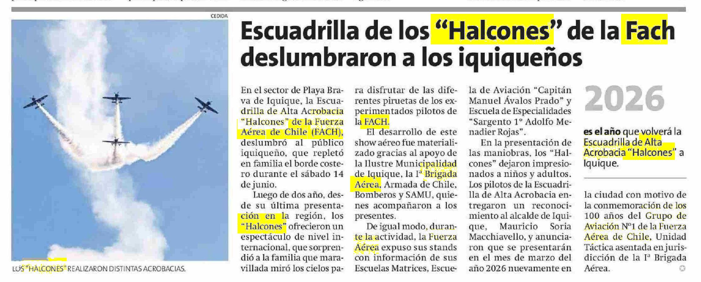 Escuadrilla de los "Halcones" de la Fach deslumbraron a los iquiqueños 16-06-2025 La Estrella de Iquique |