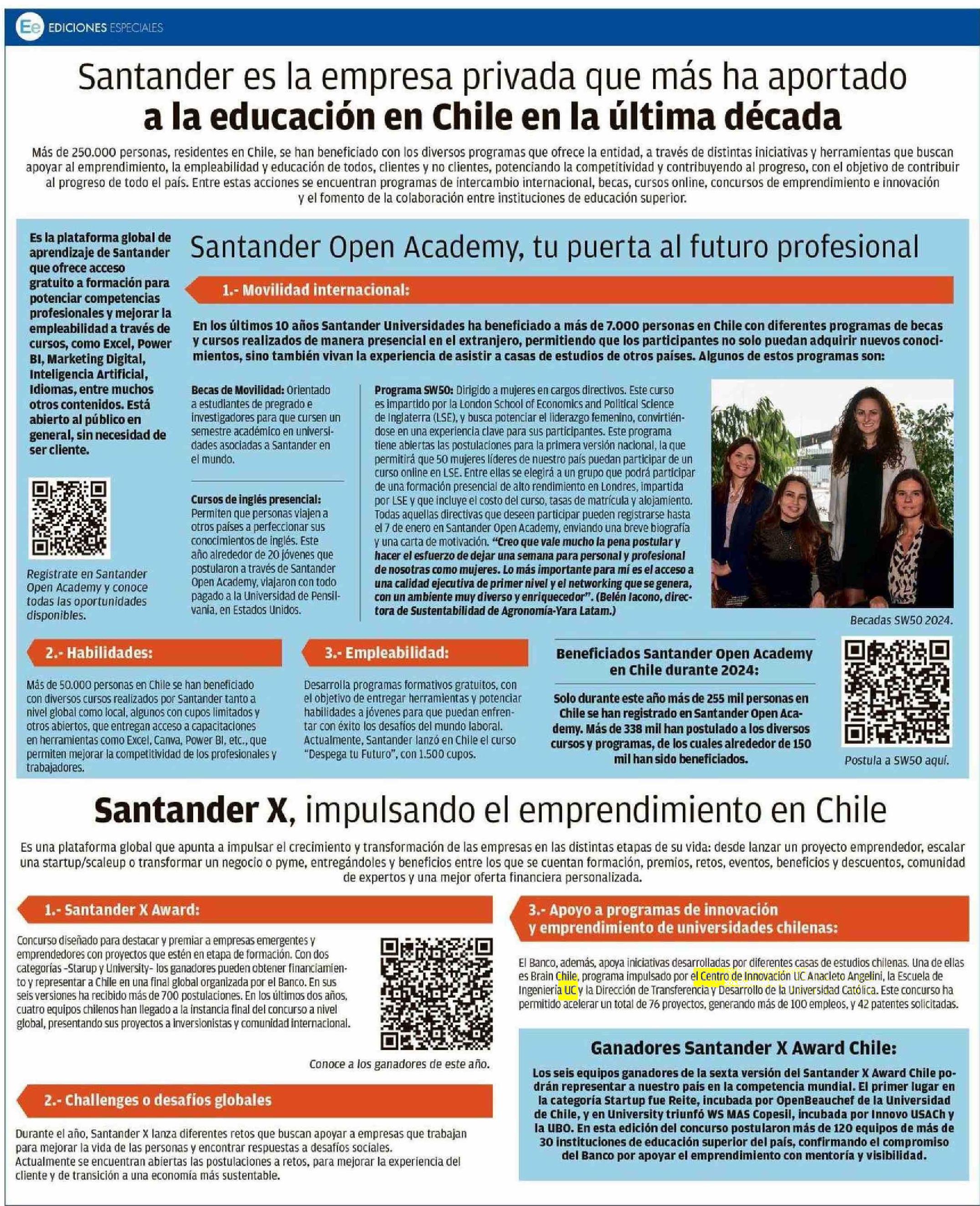 | Título: | Santander es la empresa privada que más ha aportado a la educación en Chile en la última década |