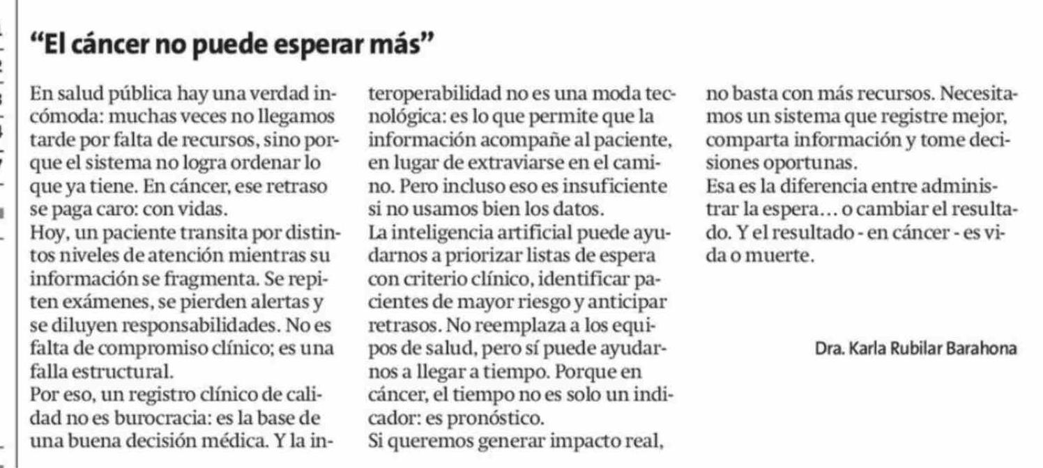 Cartas: "El cáncer no puede esperar más" 26-03-2026 La Estrella de Arica |