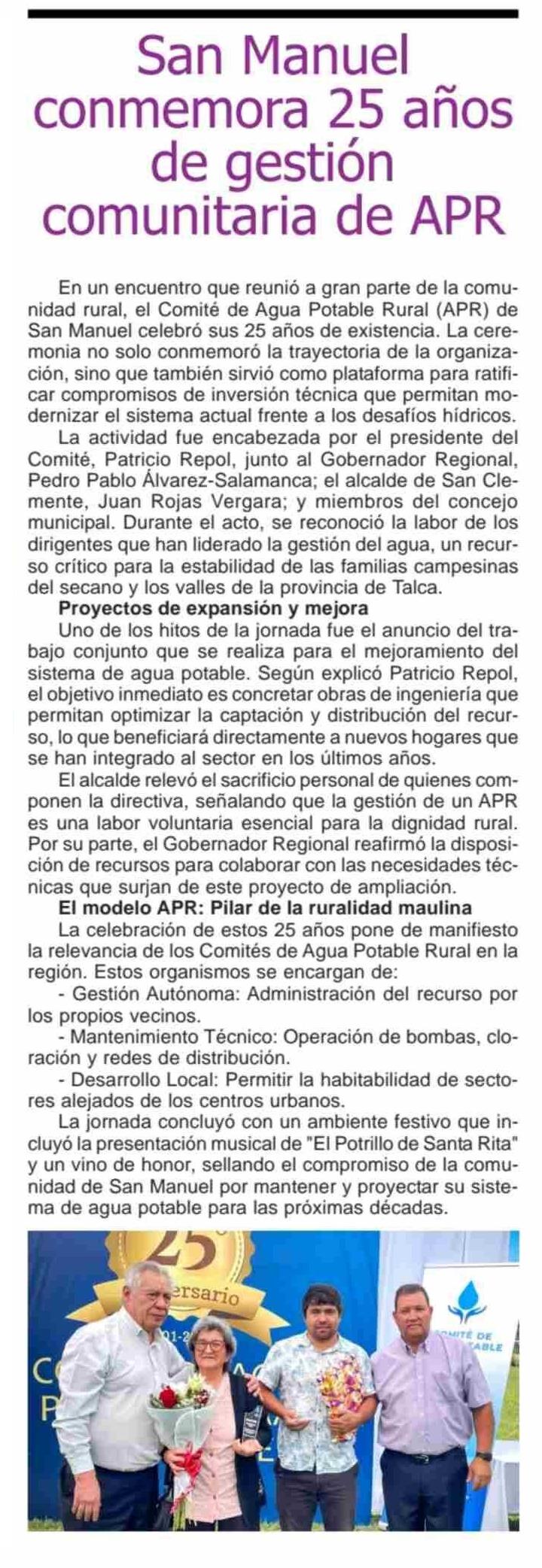 Título: San Manuel conmemora 25 años de gestión comunitaria de APR