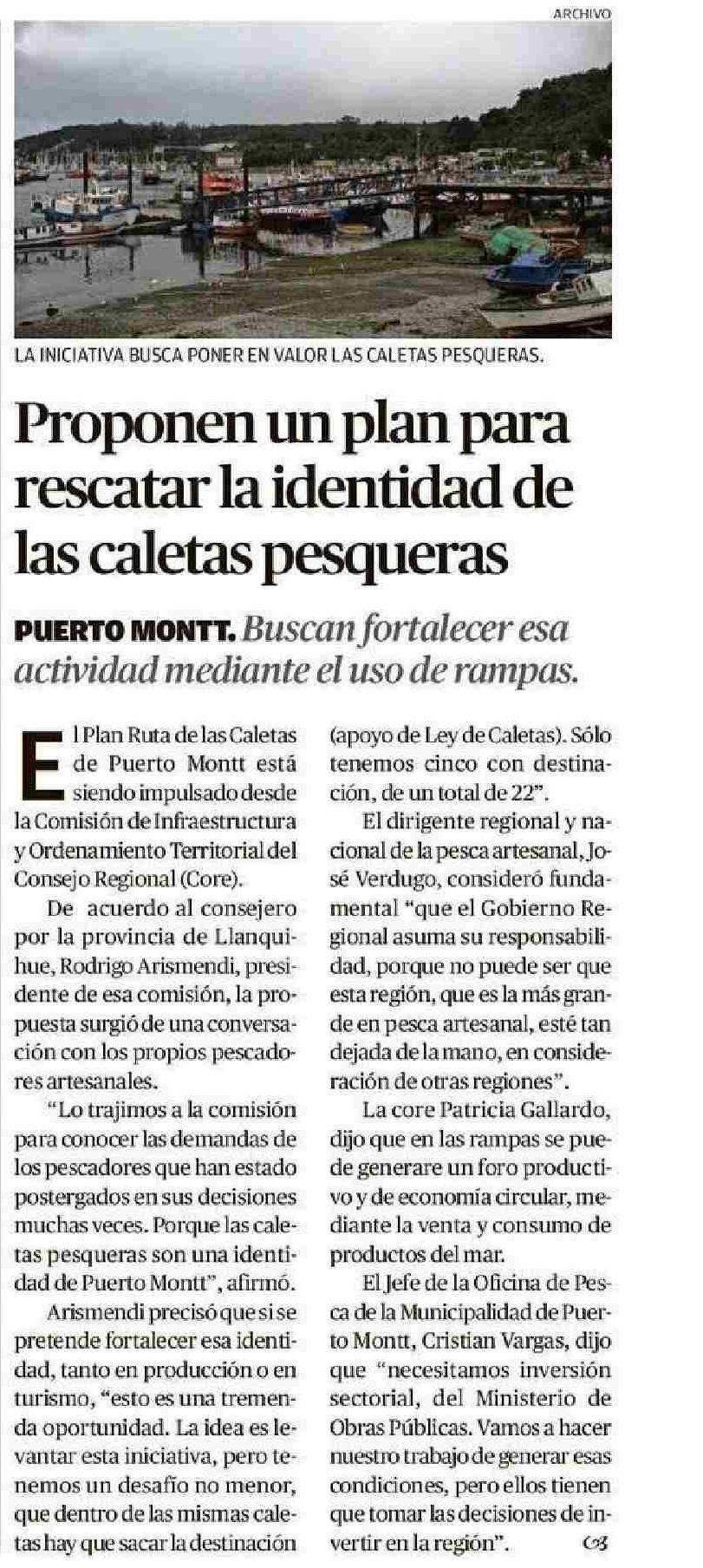 Proponen un plan para rescatar la identidad de las caletas pesqueras 22-06-2025 El Llanquihue |