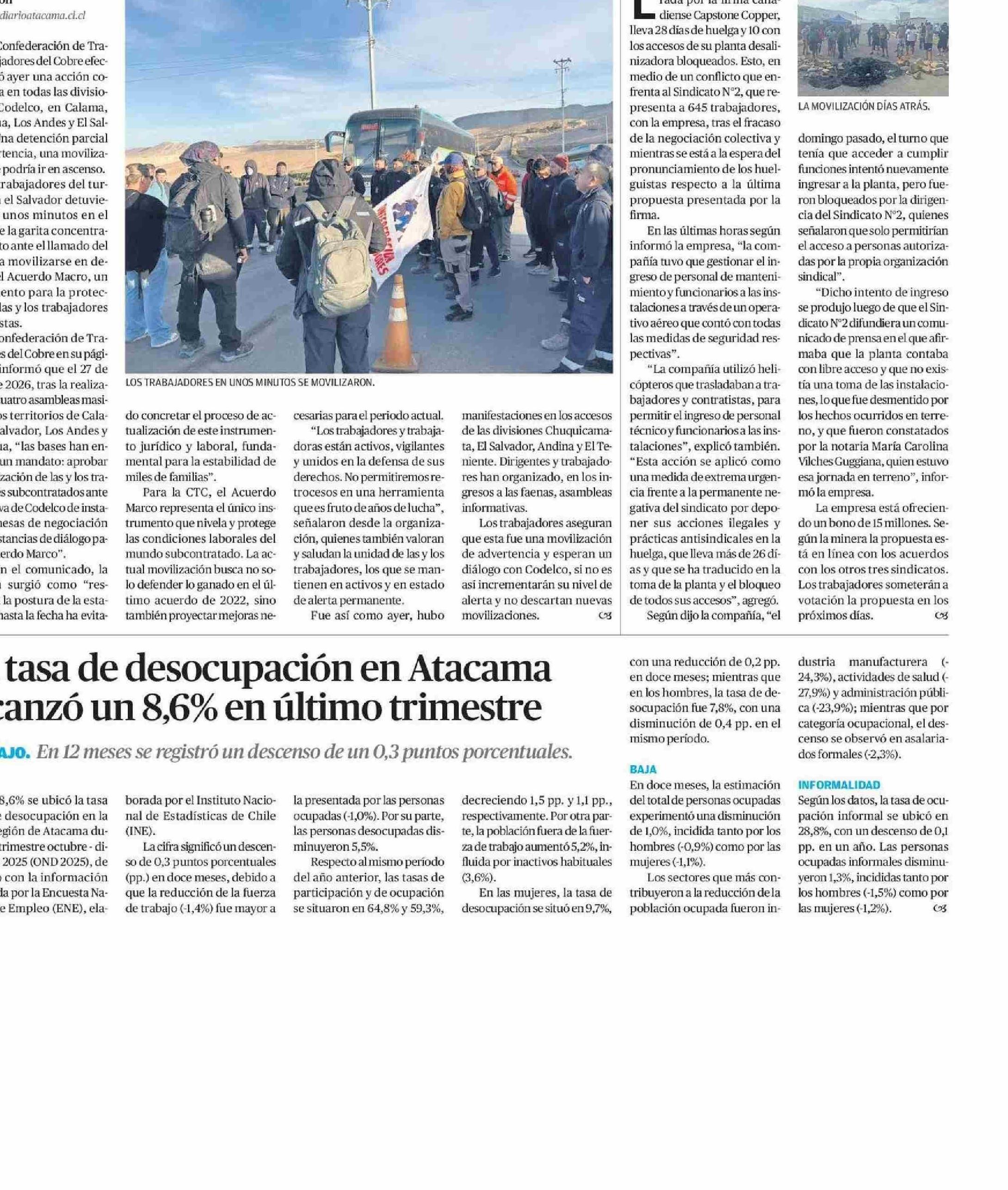 Fecha: 30-01-2026 Sector: Noticia general Región: Región de Atacama