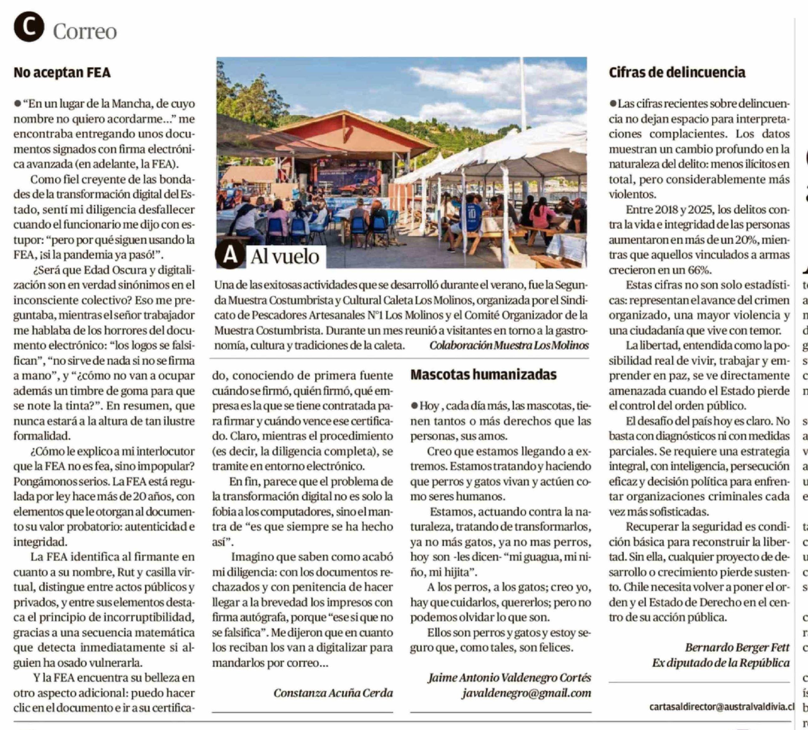 Cartas: No aceptan FEA 22-03-2026 Diario Austral Región de Los Ríos |