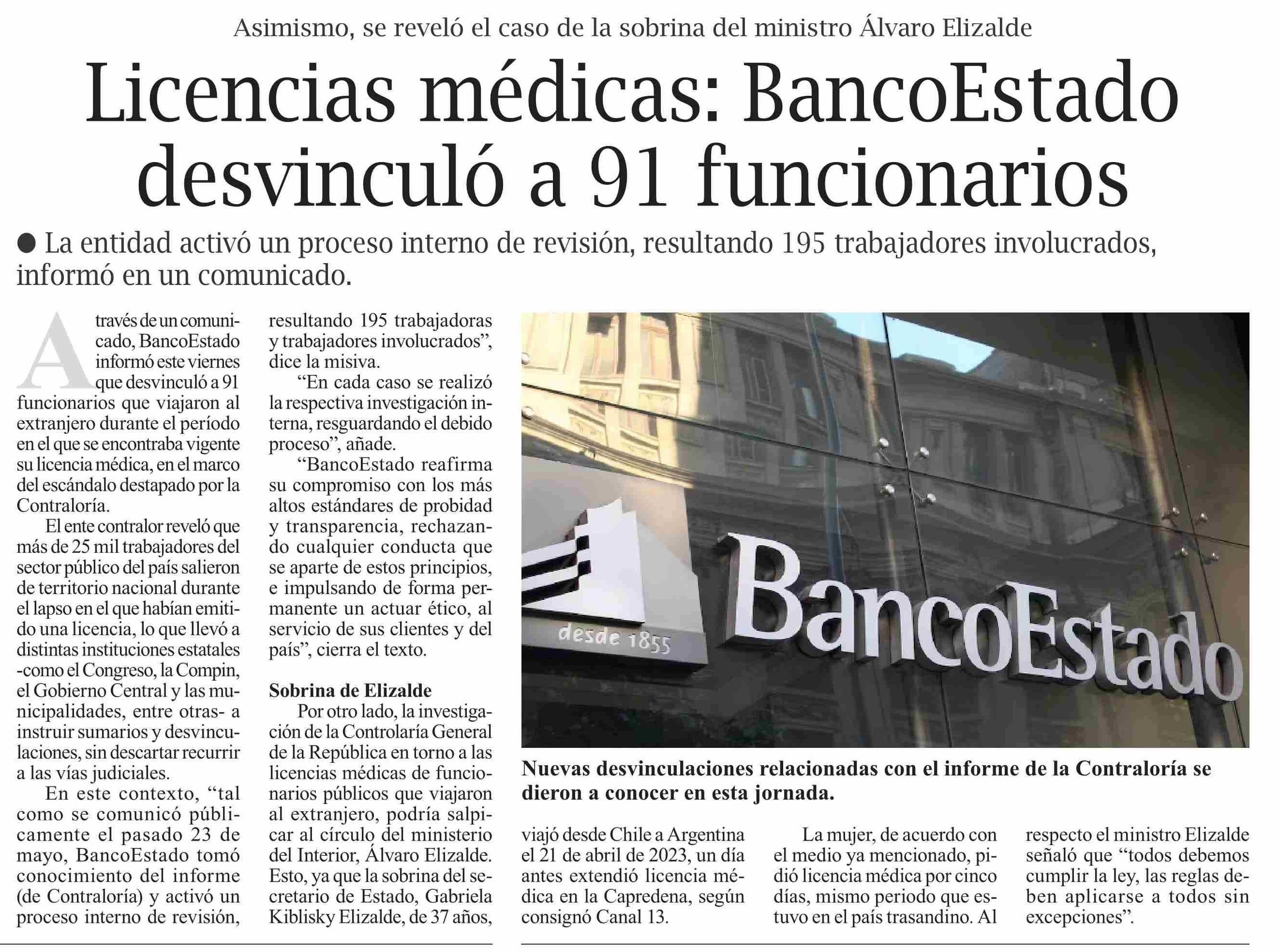 Licencias médicas: BancoEstado desvinculó a 91 funcionarios 07-06-2025 El Pingüino |