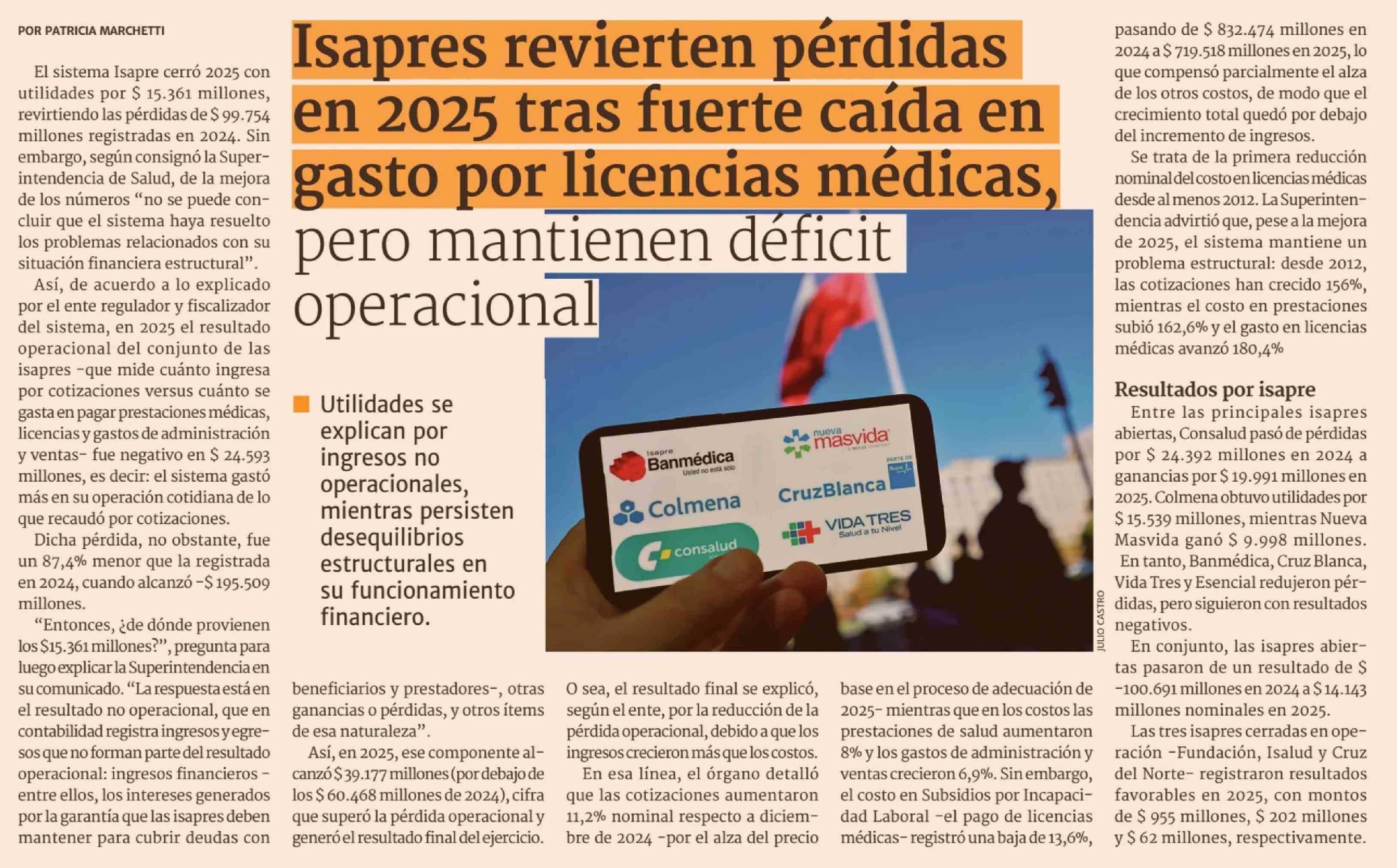 | Título: | Isapres revierten pérdidas en 2025 tras fuerte caída en gasto por licencias médicas, pero mantienen déficit operacional |