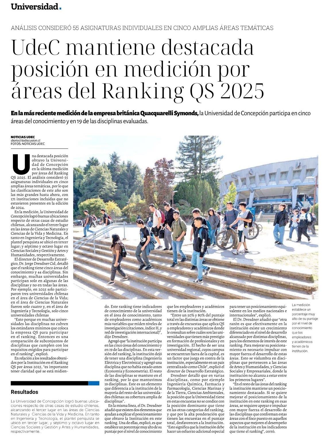 Ude C mantiene destacada posición en medición por áreas del Ranking QS 2025 19-03-2025 La Discusión |