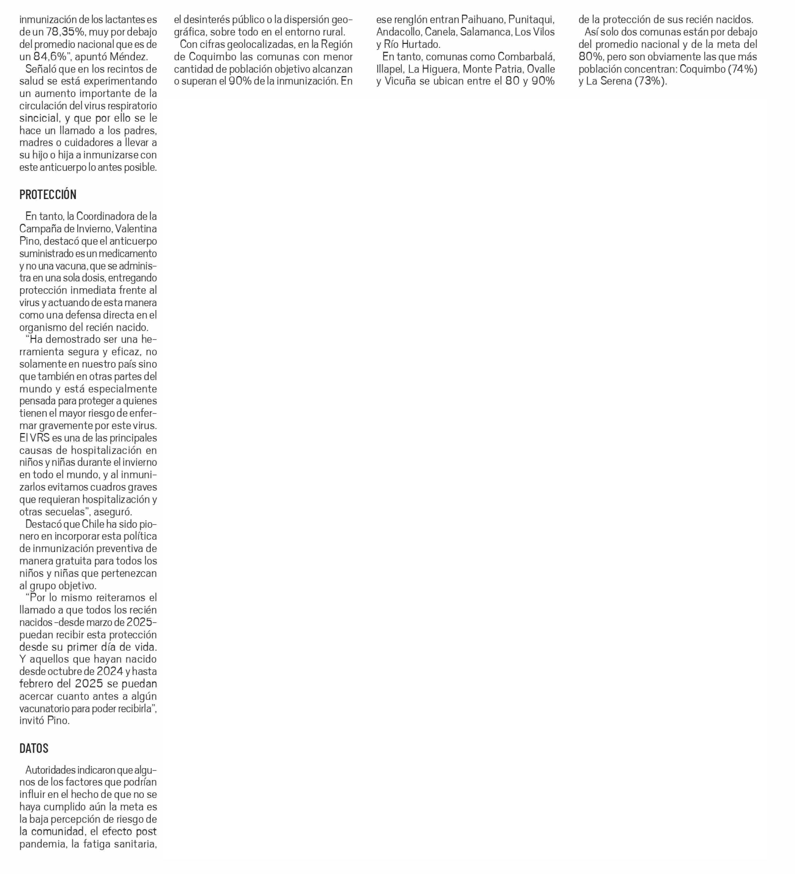 | Título: | Inmunización contra el virus sincicial está por debajo del promedio nacional |
