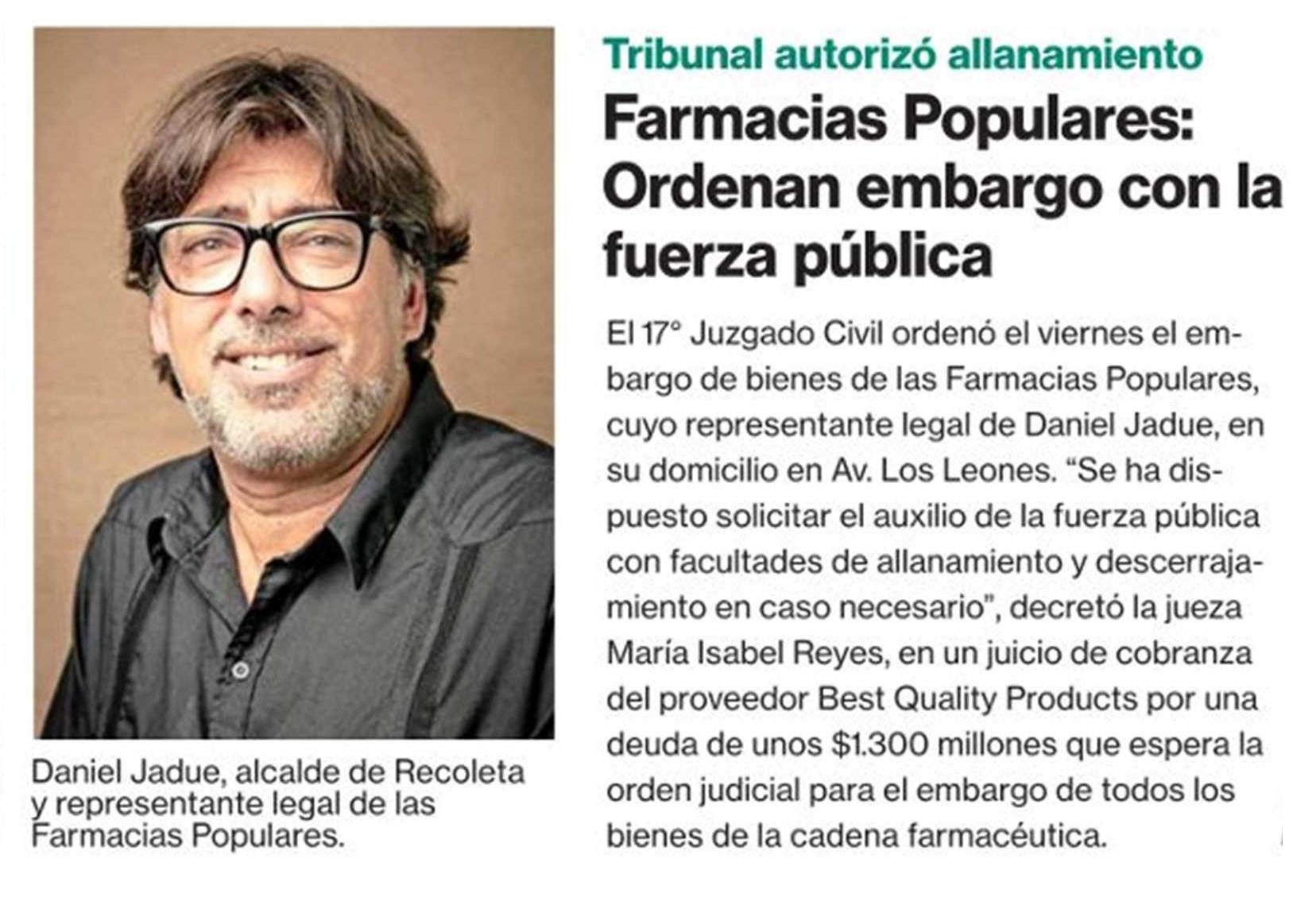 | Título: | Farmacias Populares: Ordenan embargo con la fuerza pública |