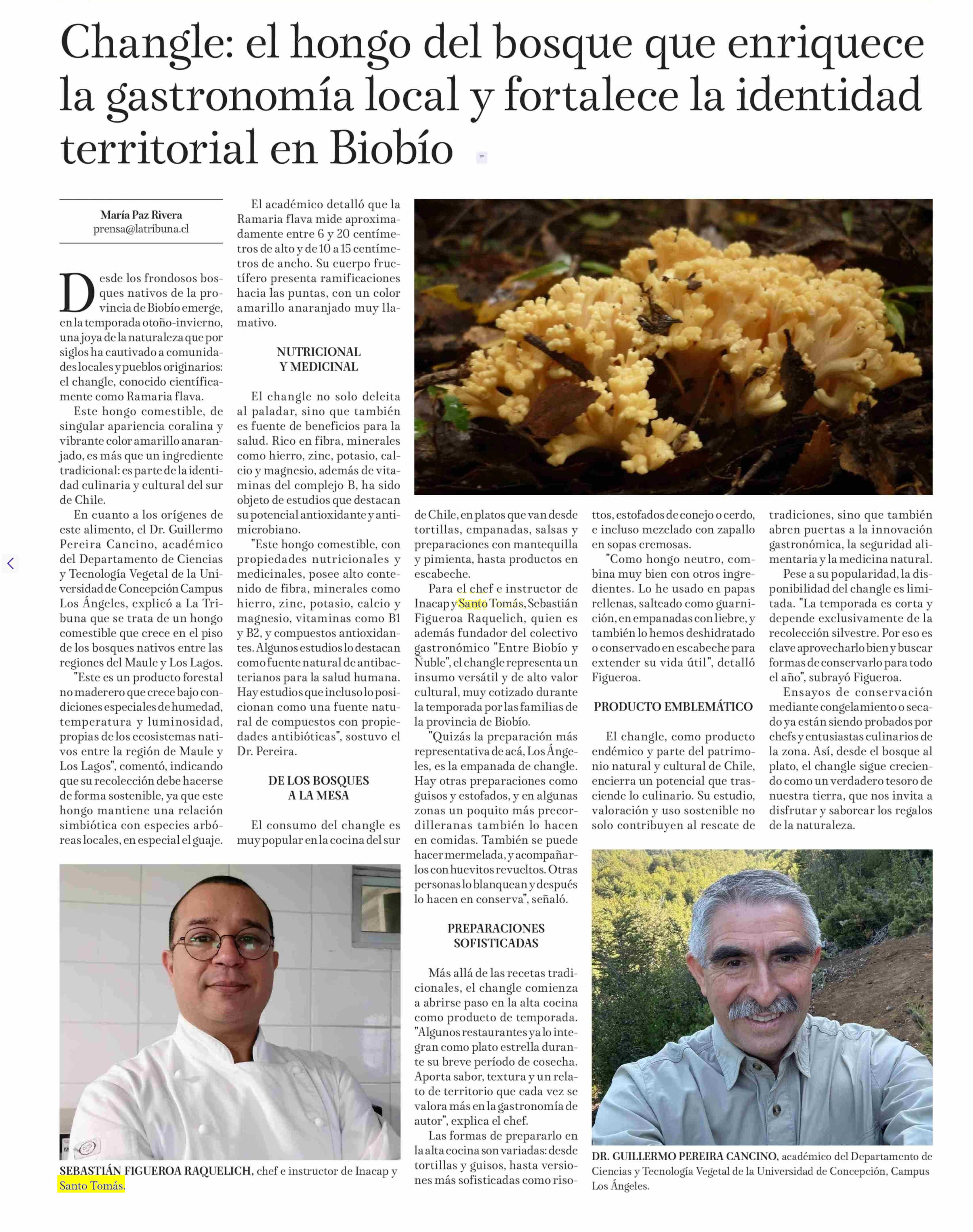 Changle: el hongo del bosque que enriquece la gastronomía local y fortalece la identidad territorial en Biobío 22-05-2025 La Tribuna |