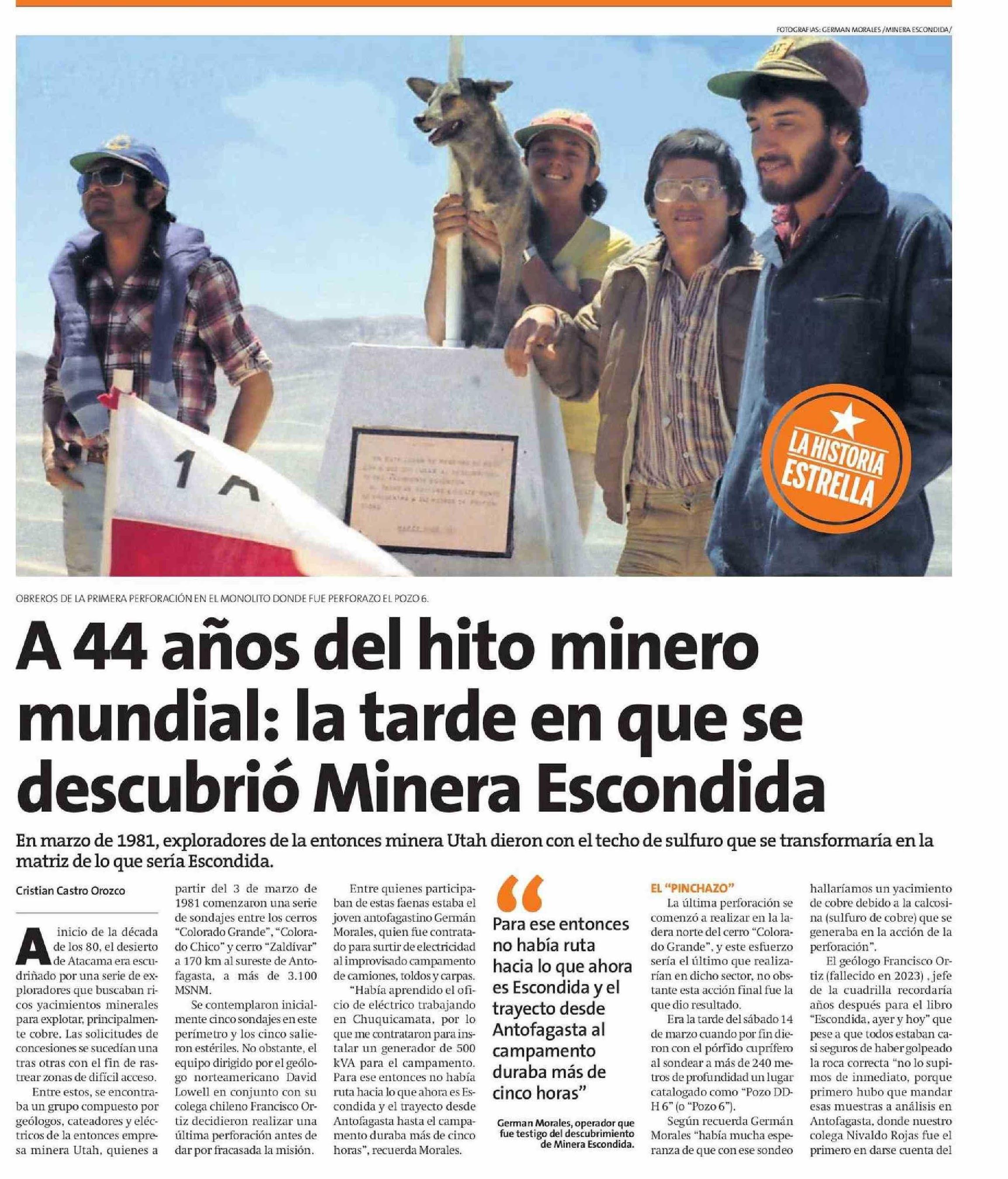 | Título: | A 44 años del hito minero mundial: la tarde en que se descubrió Minera Escondida |