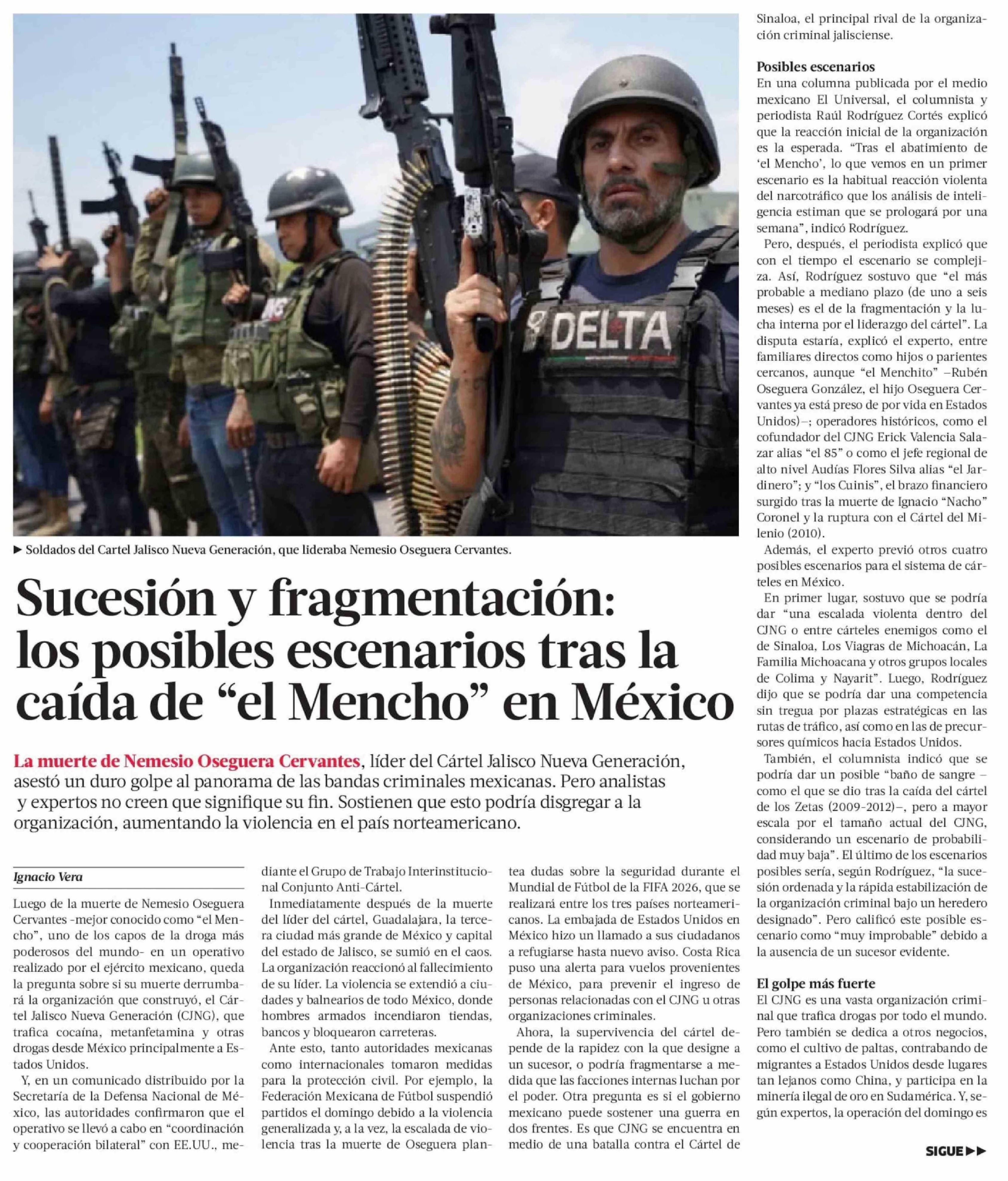 Sucesión y fragmentación: los posibles escenarios tras la caída de "el Mencho" en México 24-02-2026 La Tercera |