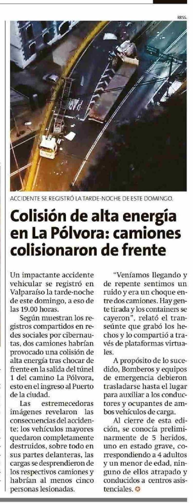 Colisión de alta energía colisionaron de frente en La Pólvora: camiones 19-05-2025 La Estrella de Valparaíso |