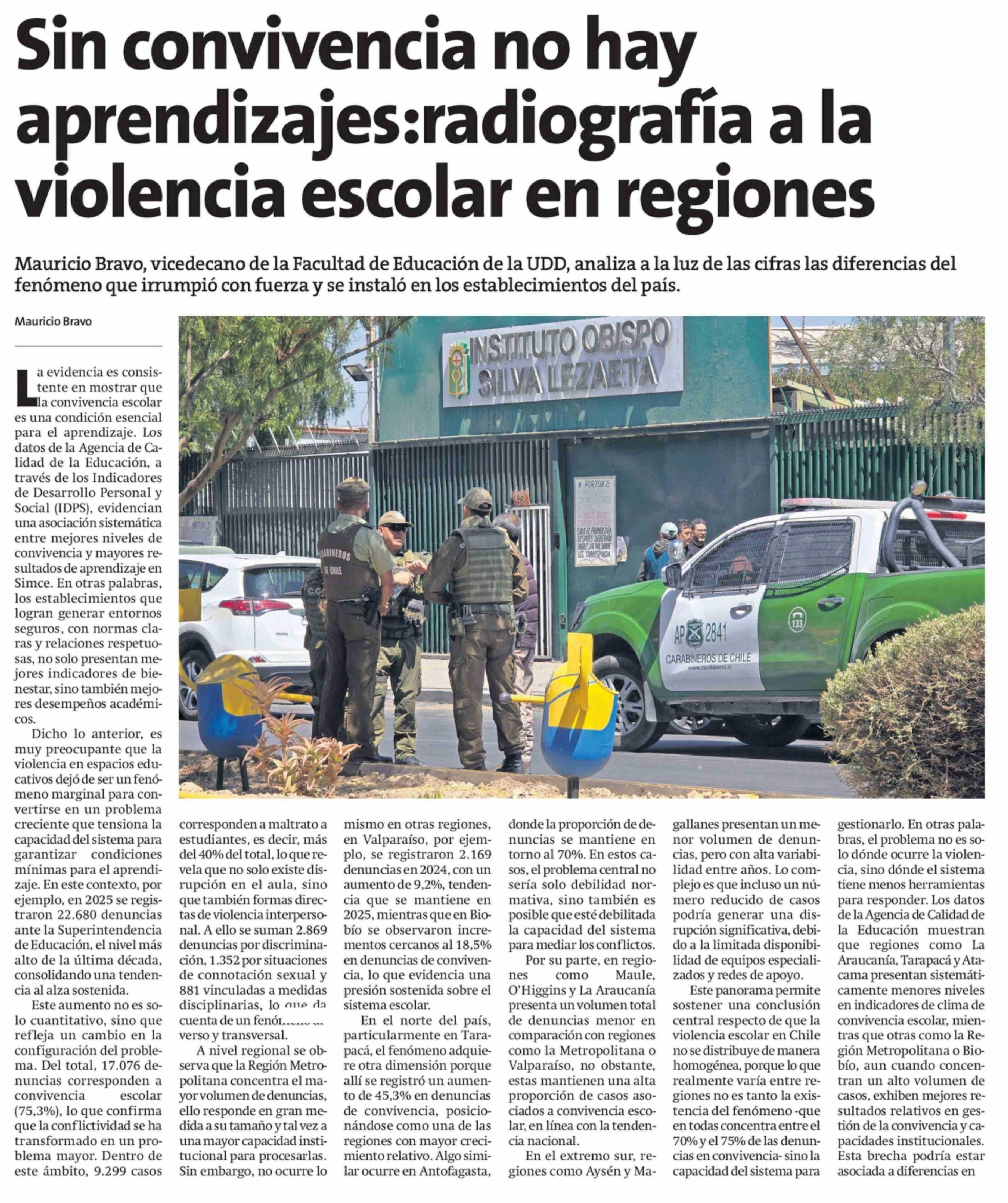 Sin convivencia no hay aprendizajes:radiografía a la violencia escolar en regiones 19-04-2026 La Estrella de Arica |